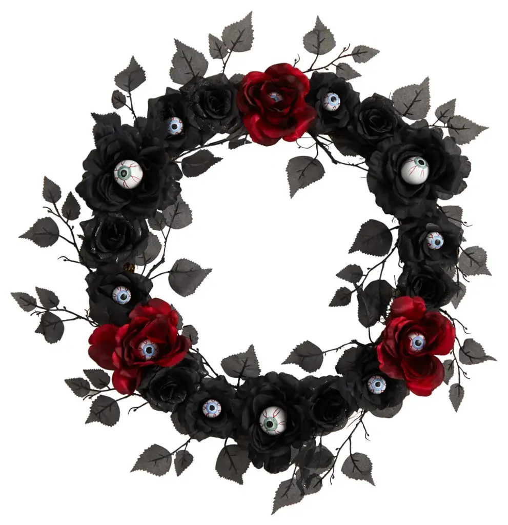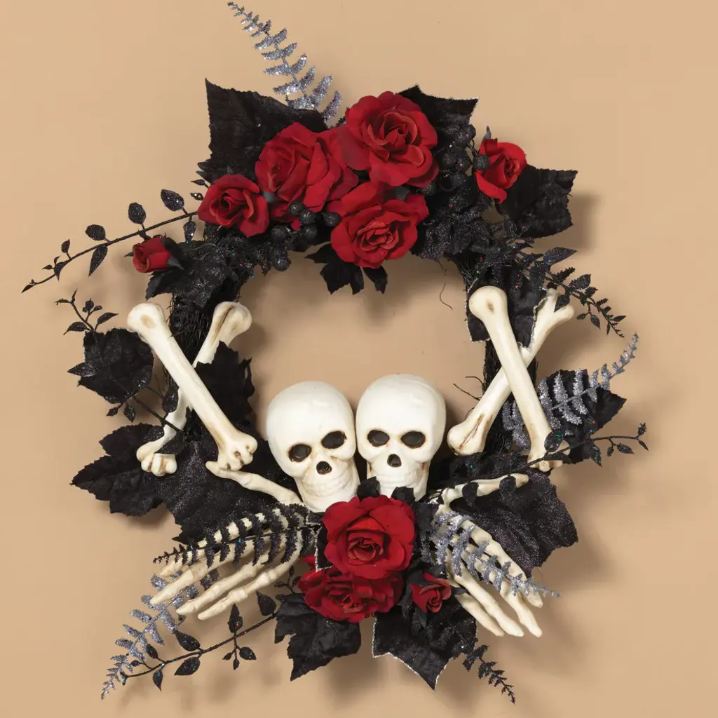 Its that time of the year again! Bring a fright, to your neighborhood with this spooky, creepy skeleton and roses halloween wreath. Artistically designed and made of quality materials, this halloween wreath is covered in skeleton bones and roses. At a perfect 24-inches in diameter and intertwined with black leaves, this wreath will fill out any front door! Celebrate the scariest of all holidays with this wreath that you can use for years to come.