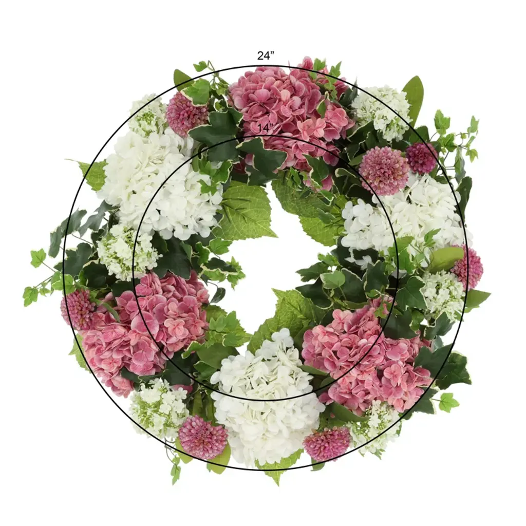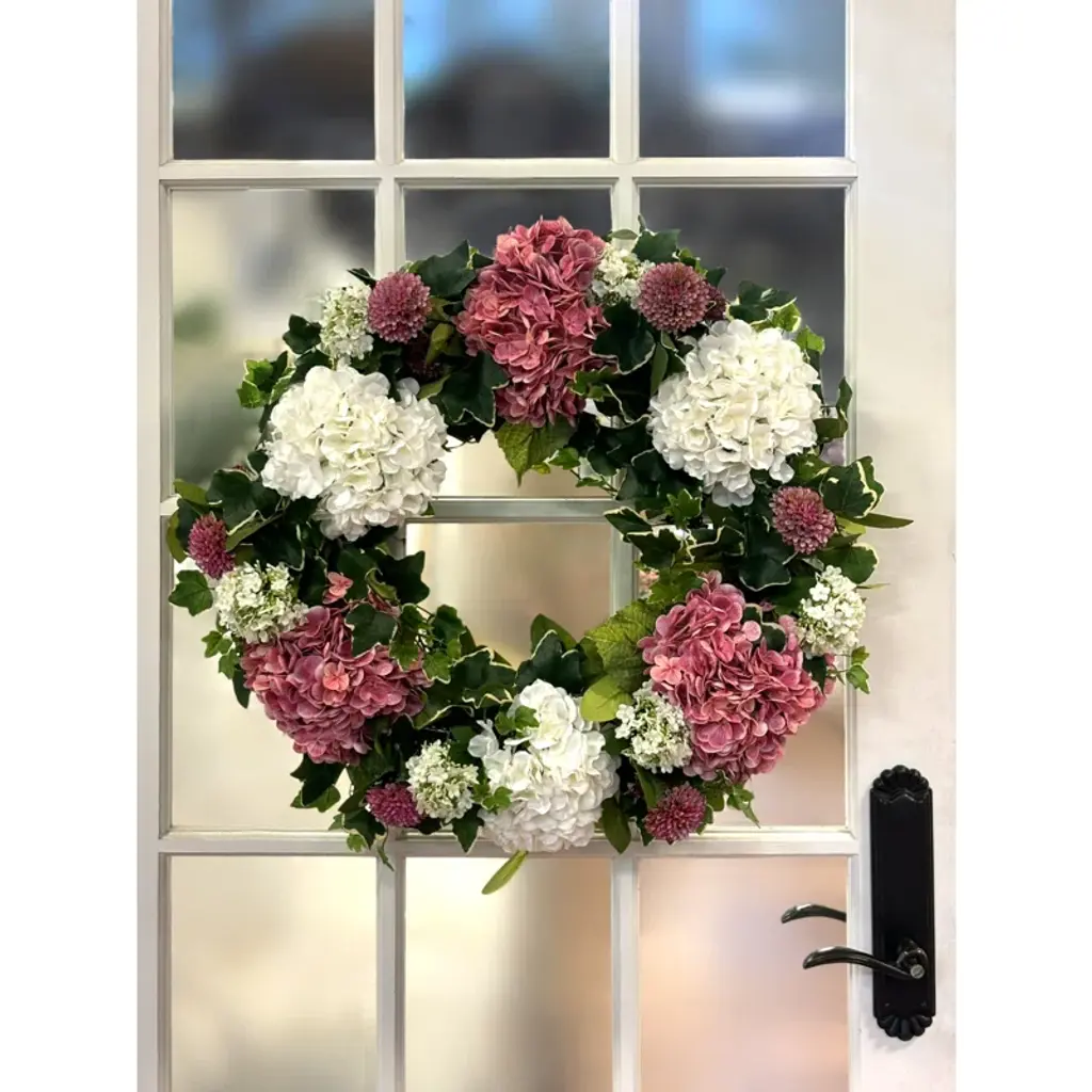 24" Hydrangea Wreath With Dahlias And Ivy