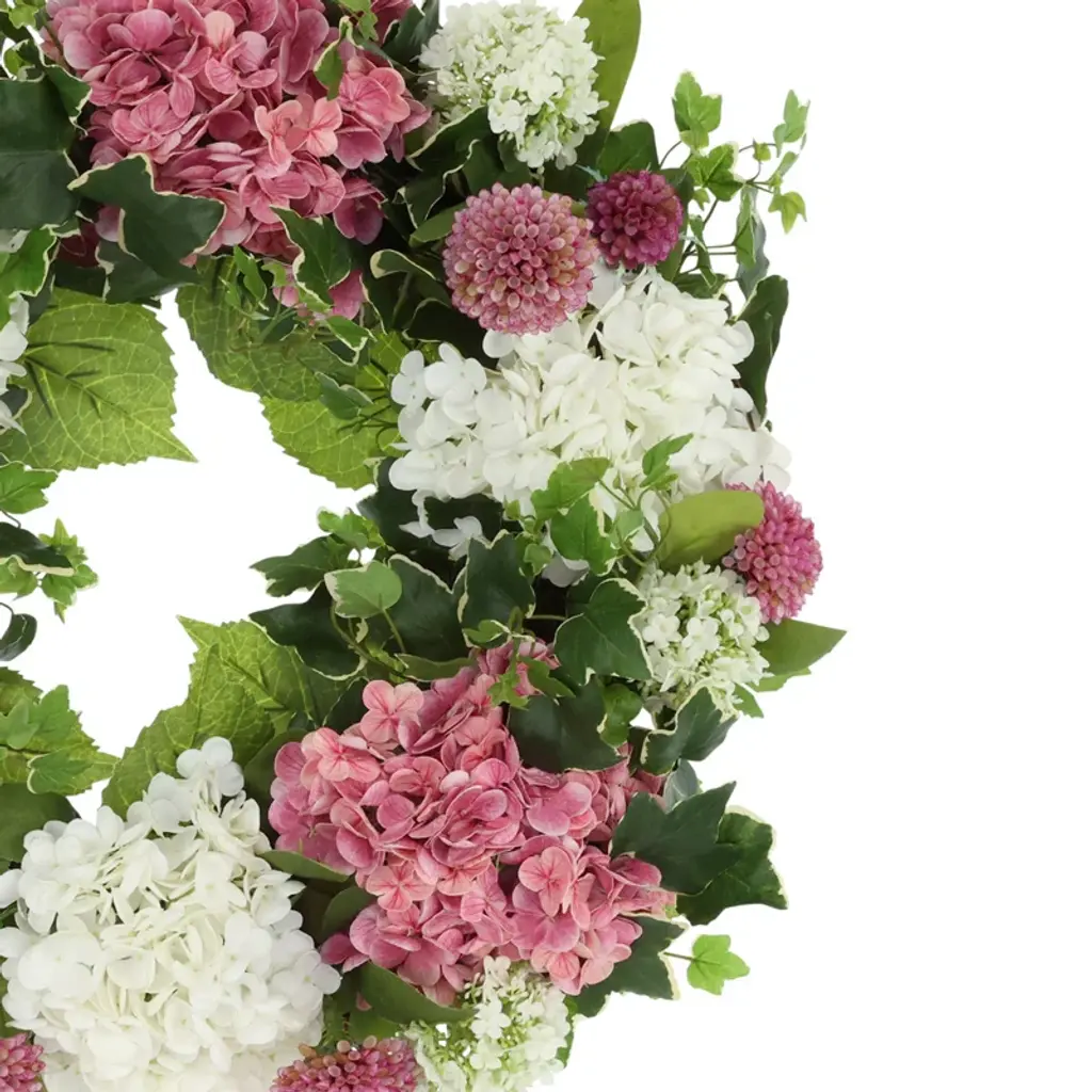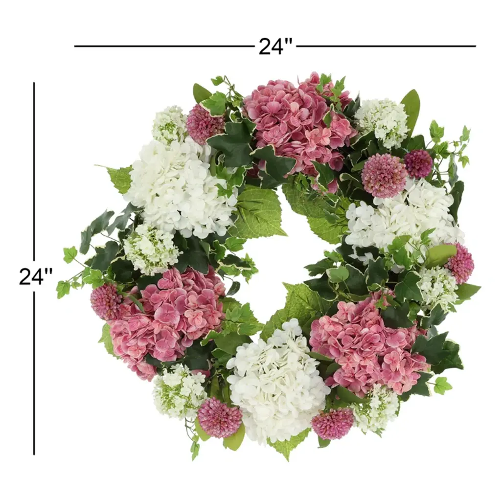 Add a touch of spring to your home with this beautiful faux floral wreath. Featuring a grapevine wreath with lush, lifelike hydrangeas, charming dahlias and ivy, this wreath is the perfect addition to any style decor. Requiring no maintenance aside from an occasional dusting, this wreath can simply be hung in your favorite place and enjoyed worry-free, season after season.
