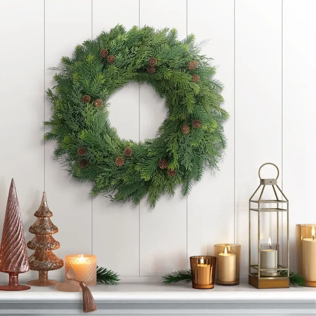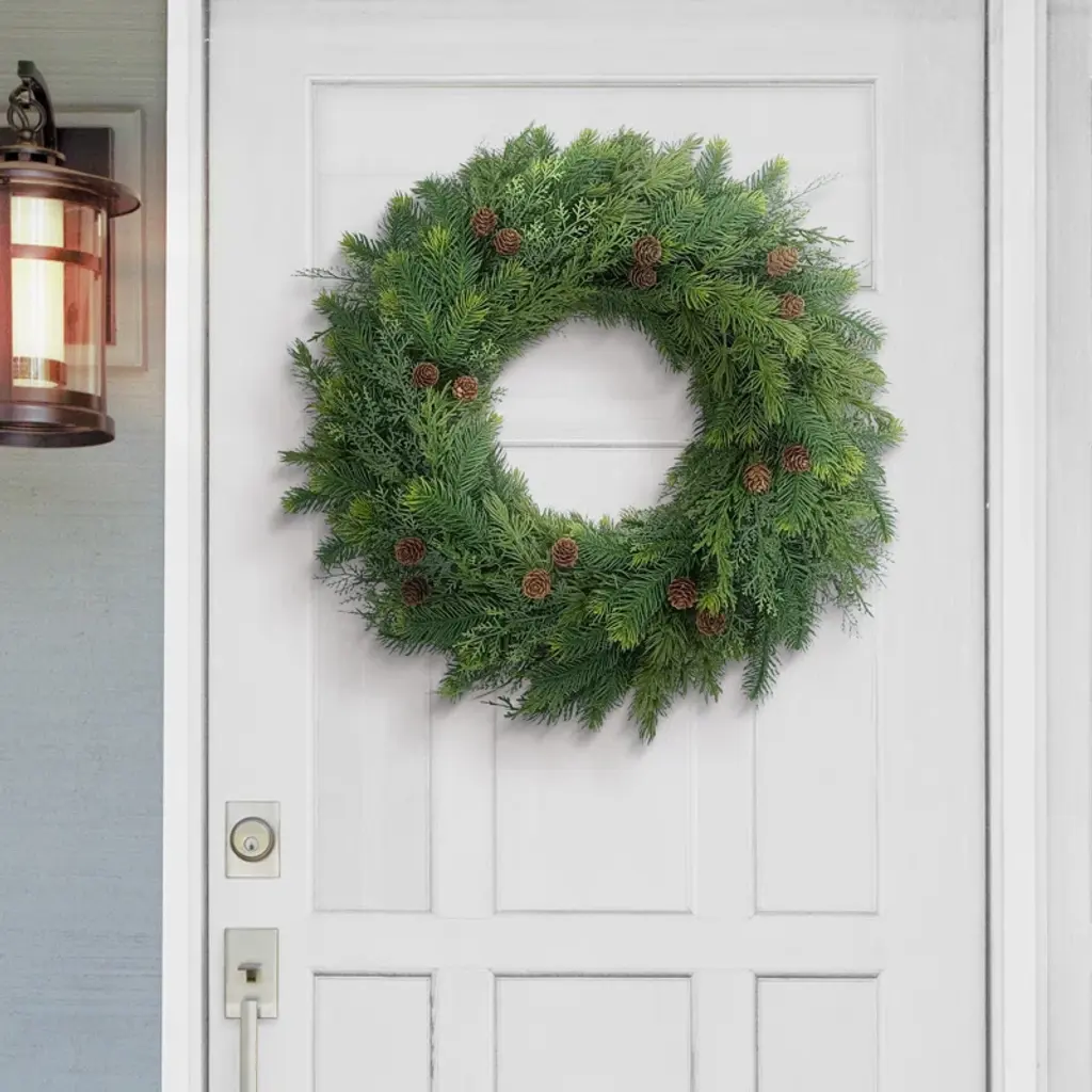 24 Inch Artificial Christmas Wreath With Soft Pe Tips Adorned With Pinecones