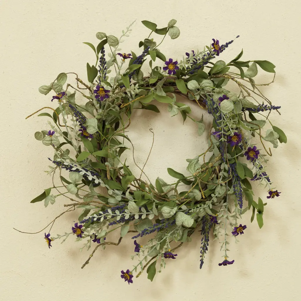 Bring the delight of a blooming garden into your own home with this stunning 24-inch diameter lavender herbs wreath. Artfully-crafted with lavender stems and herbs, and reinforced with metal wire, this beautiful wreath simply screams spring but is ideal for year-round use. Ideal as a house-warming gift for friends, family or that special someone, this stunning wreath is also perfect for accenting your own unique style of decor in your home. You''ll get years of pleasure from this lovely and beautifully-arranged wreath.