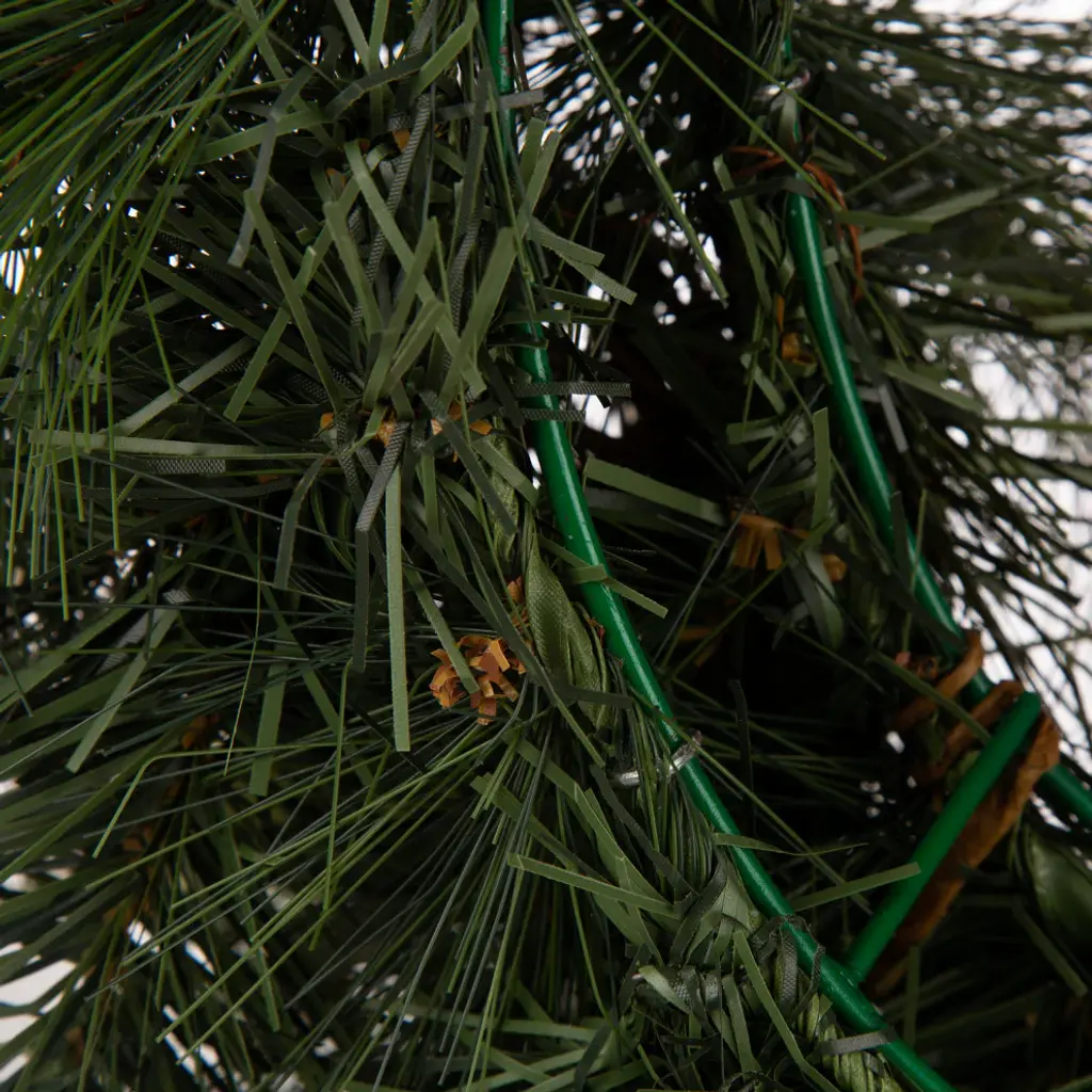 24" Led Pre-Lit Greenery Buffalo Berry Holly Pine Cone Rattan Ornament Wreath