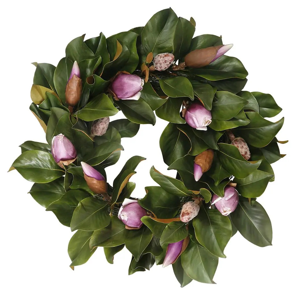 Beautiful faux wreath magnolia for hanging on the door or wall. Designed to resemble that of nature. Magnolia flower, buds, and leaves feel natural to the touch.
