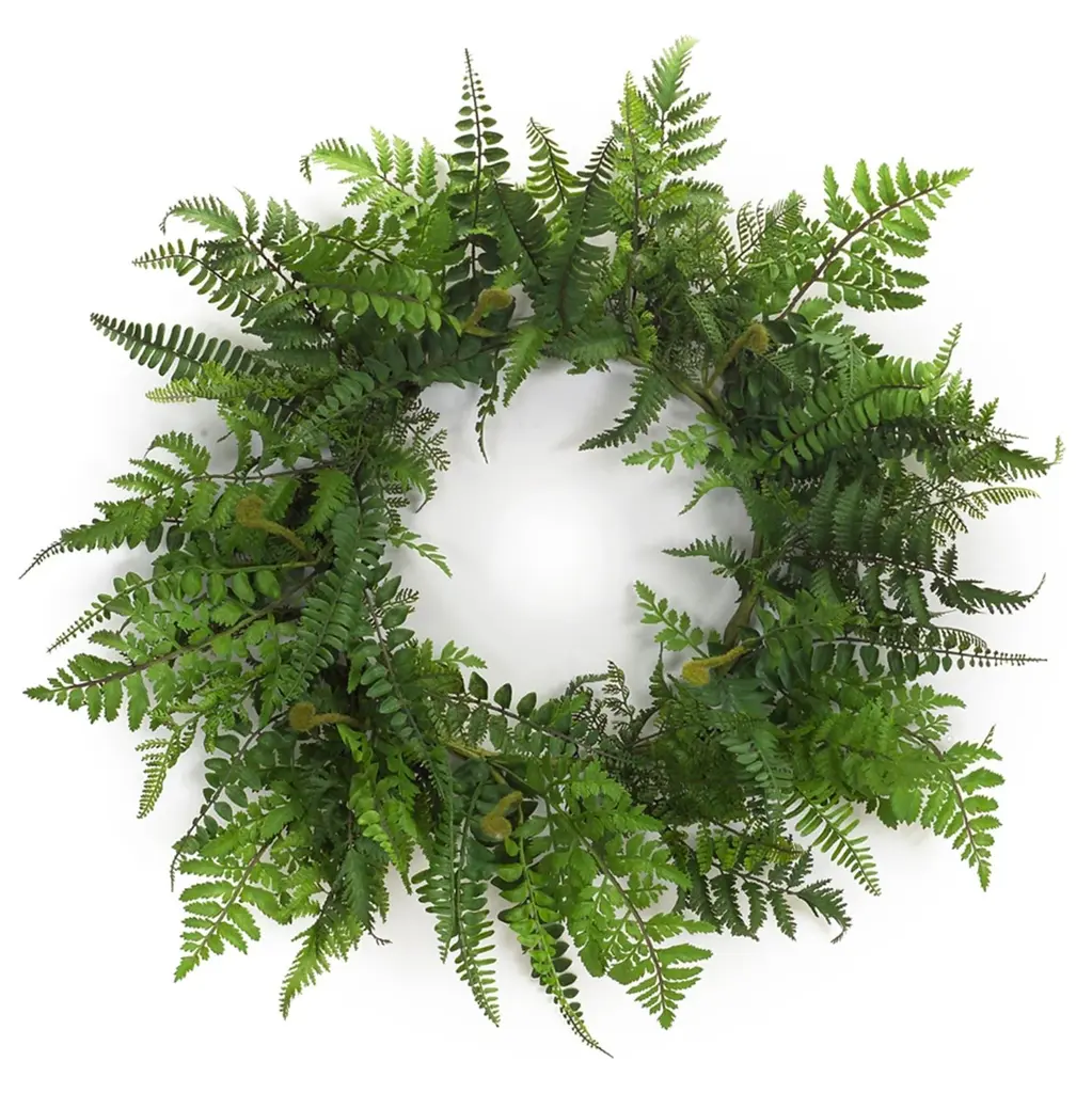 This mixed artificial fern wreath doesn''t need accent colors or additional pieces to help make it stand out--it does a fine job of that on it''s own! The richness of the greenery make it the perfect festive decoration to hang on your front door.