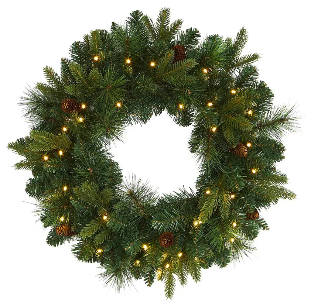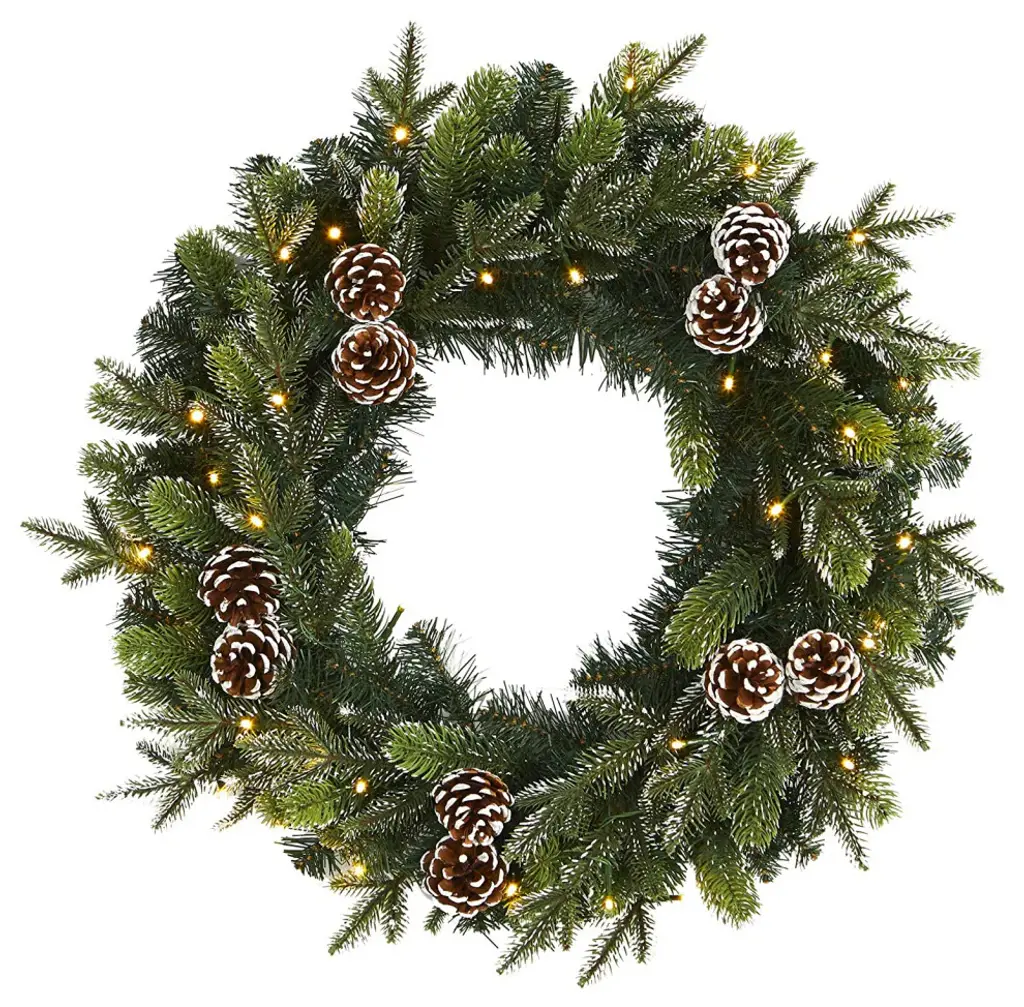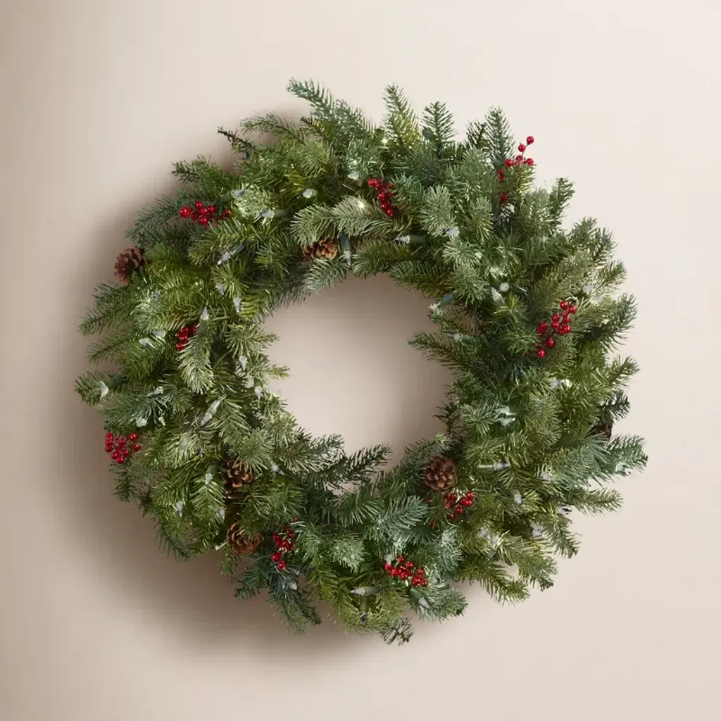 24" Mixed Pine And Glittered Berry Artificial Christmas Wreath, Unlit