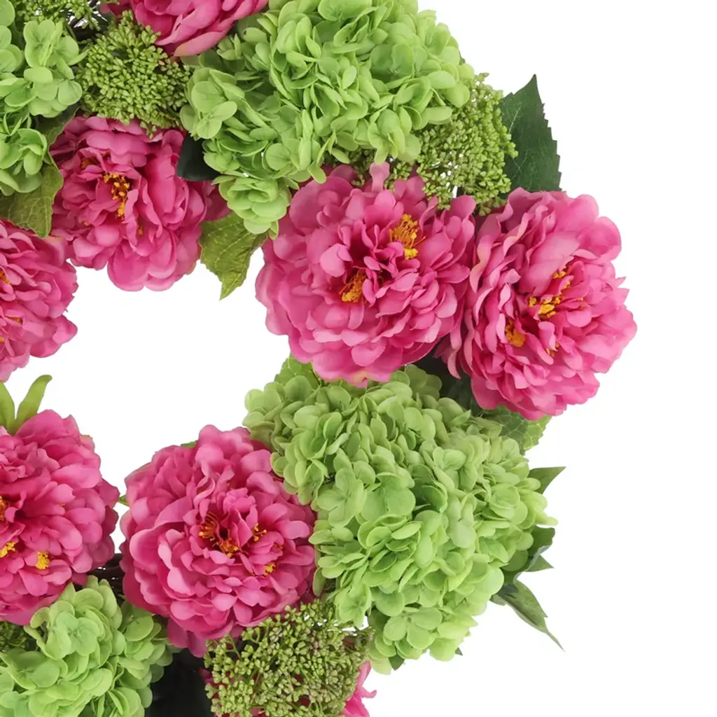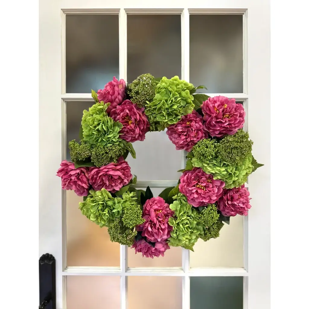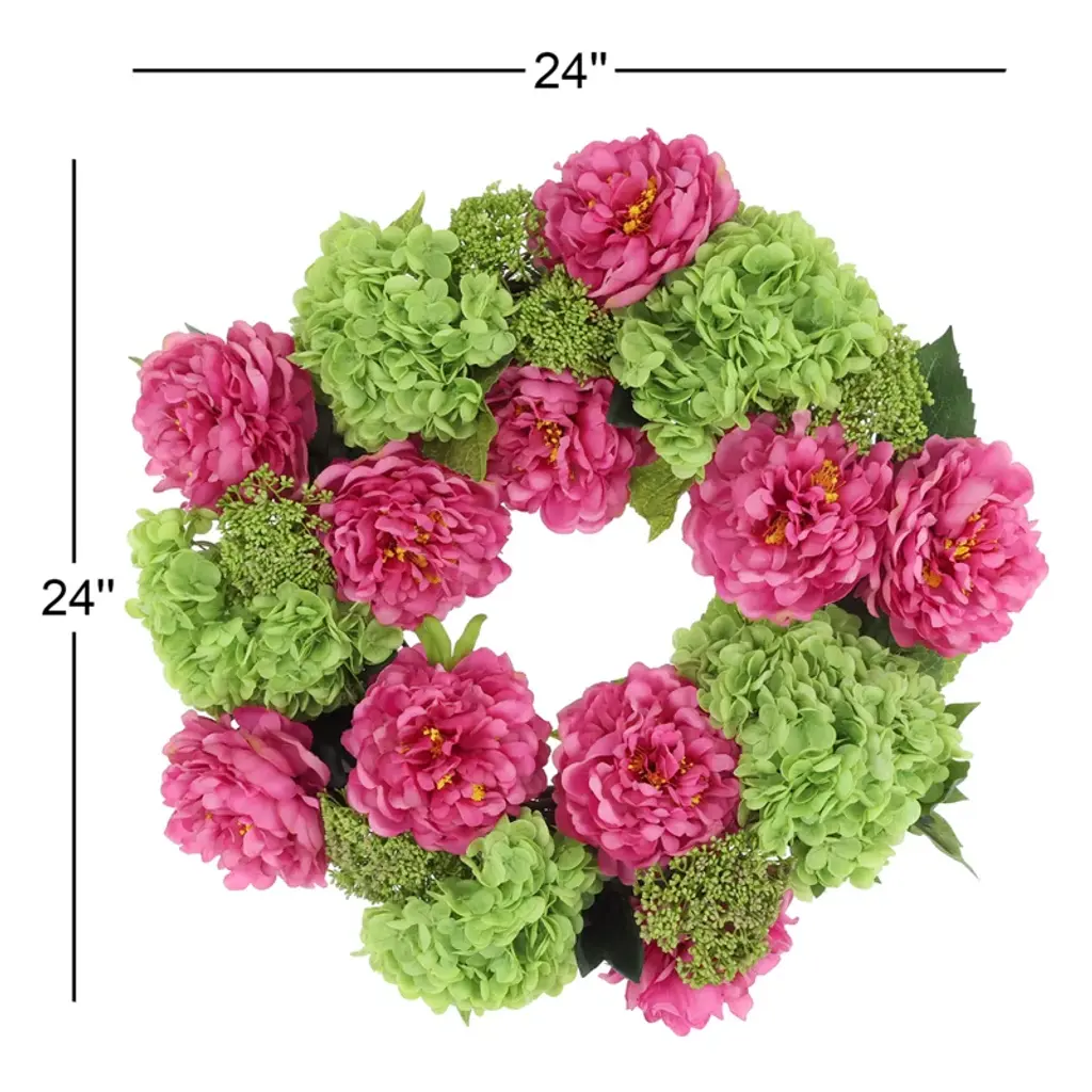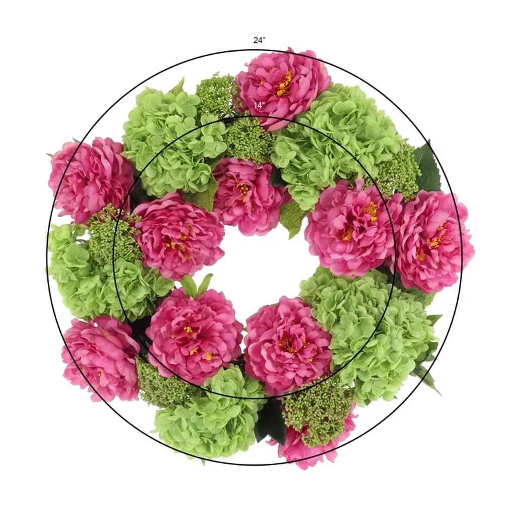 24" Real-Touch Hydrangea Wreath With Peonies And Sedum