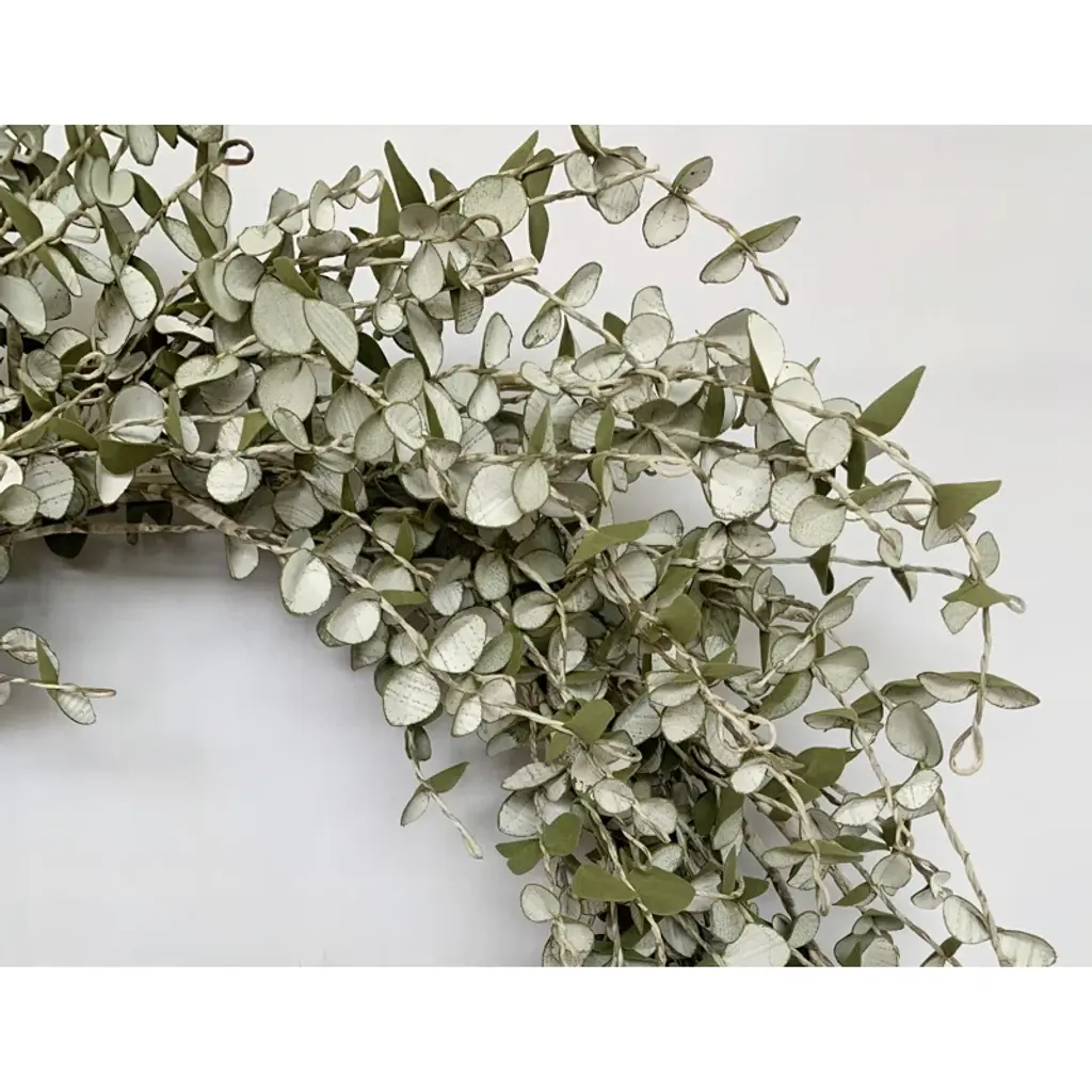 This delicate wreath is completed by washed white eva eucalyptus leaves, its natural and realistic appearance giving you a feeling of being in the middle of nature, grants you vitality indoor and outdoor.