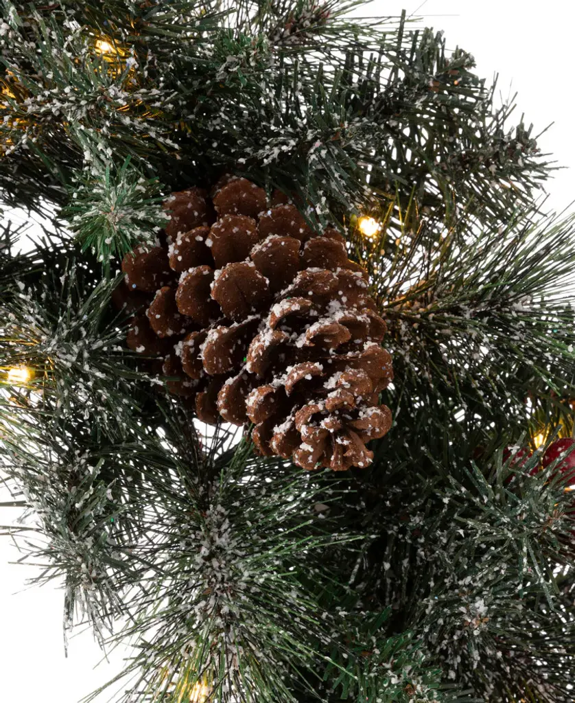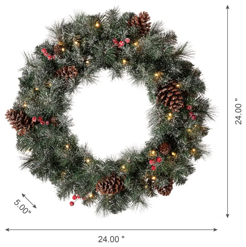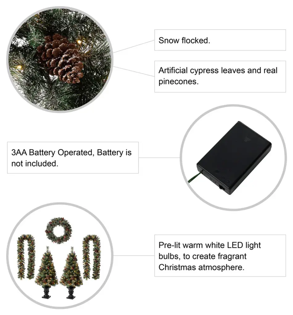 "This set sale Several creating the perfect holiday touch for your home. The 24""D Christmas Wreath crafted with frosted Pine needle tips, Pine Cones and berries, it will add a touch of charming light and cheer to your front door or window during your holiday season. The 9-foot garland provides ample length to easily adorn doors, mantles or banisters, making this versatile decoration ideal for any situation. Each of the 180 tips is modeled to a pine tree"™s while the frosted design creates a winter wonderland around your home. Several large pinecones and berry decorations among the needles add an extra holiday touch to this garland.This 4ft Pre-Lit Snow Flocked Artificial Christmas tree create a unique wintery feel, it will be an eye-catching porch decor or standing decor during the Christmas holidays."