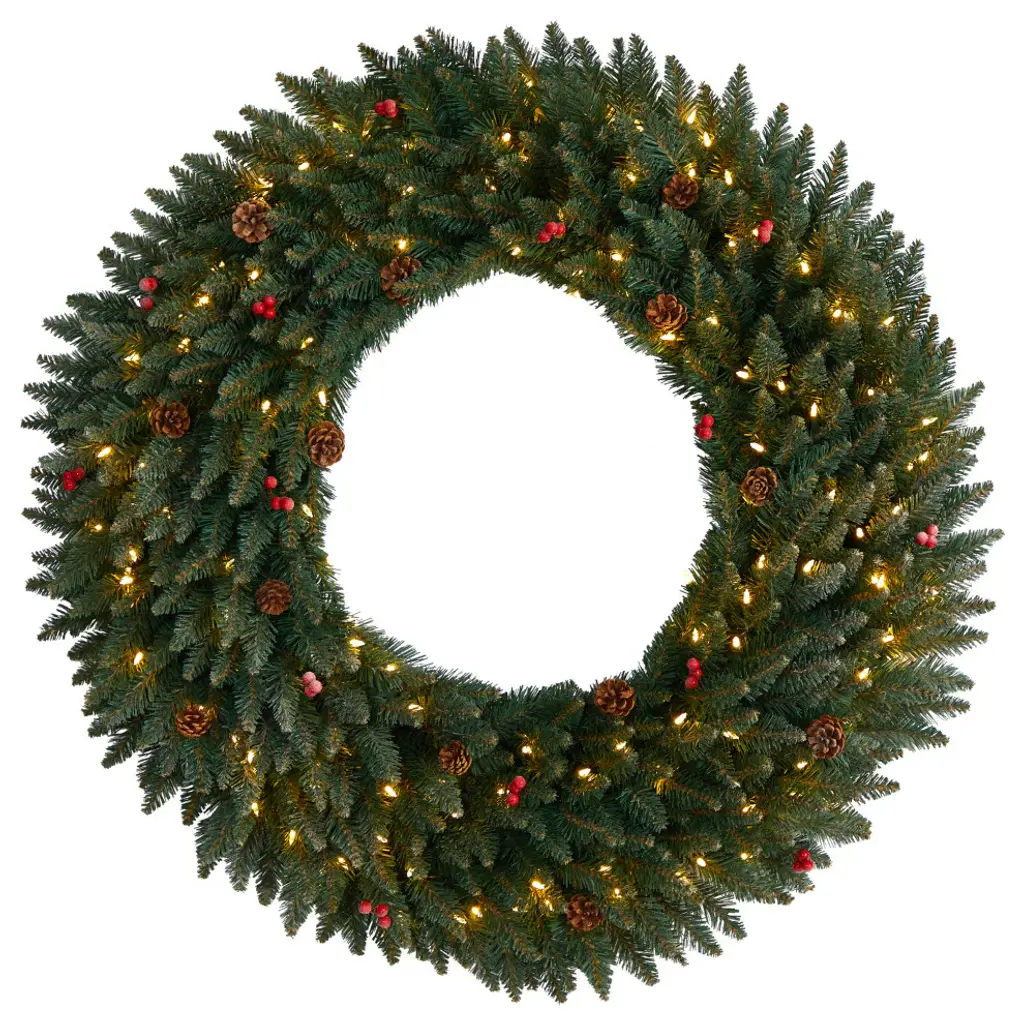 24ï¿1⁄2 Green Pine Christmas Wreath / 50 Warm White Led Lights, Berries And Pine