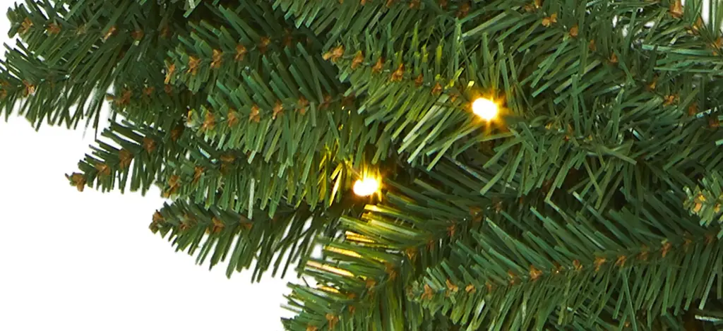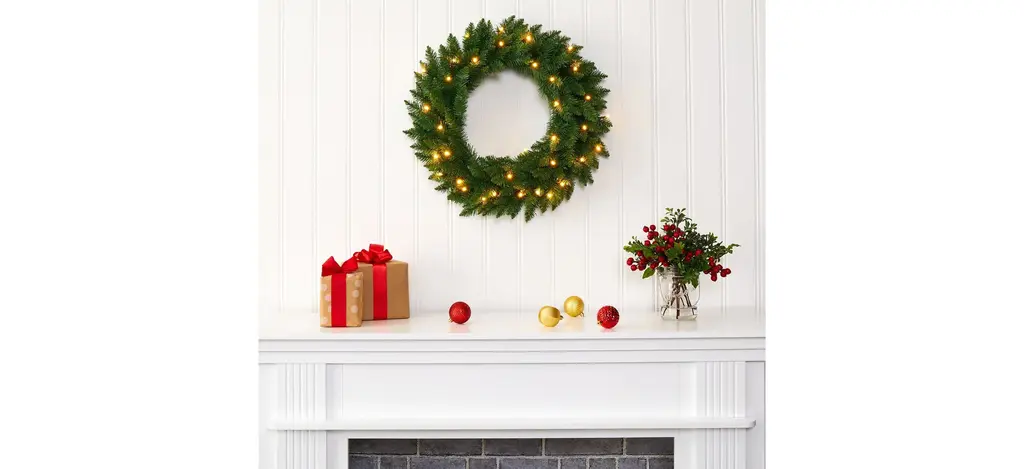 Light up your favorite seasonal accents while adding serious curb-side appeal with this artificial wreath intricately designed from a rich collection of pine foliage in bright, year-round evergreens that look incredibly realistic. Arriving pre-strung with 35 clear LED lights to effortlessly illuminate either a wall or door, this 24" (in circumference) decorative wreath makes for an inviting accent and will undoubtedly transform any entrance all throughout the holiday season.