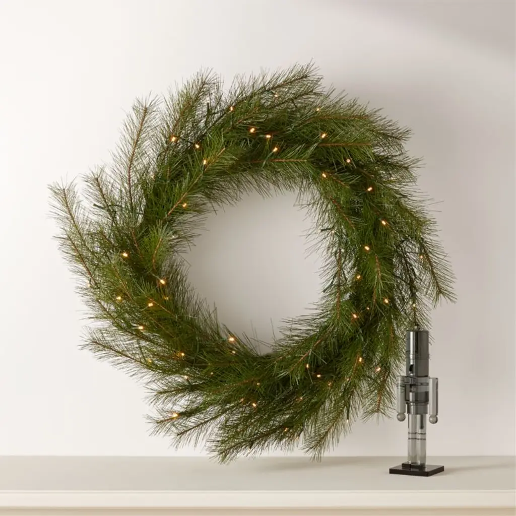 24in. Pre-Lit Long Pine Artificial Christmas Wreath