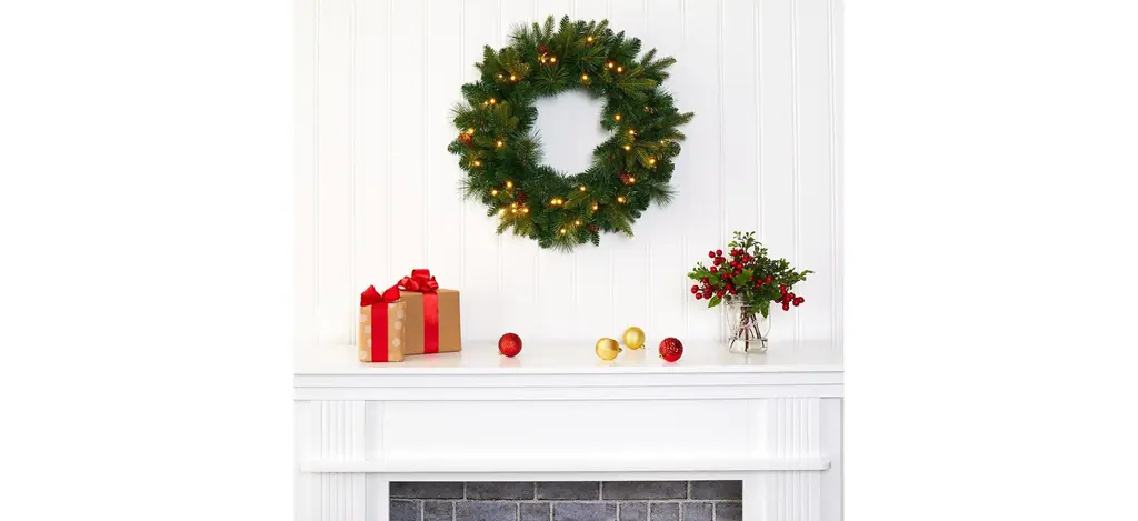 24in. Pre-Lit Mixed Pine Artificial Christmas Wreath