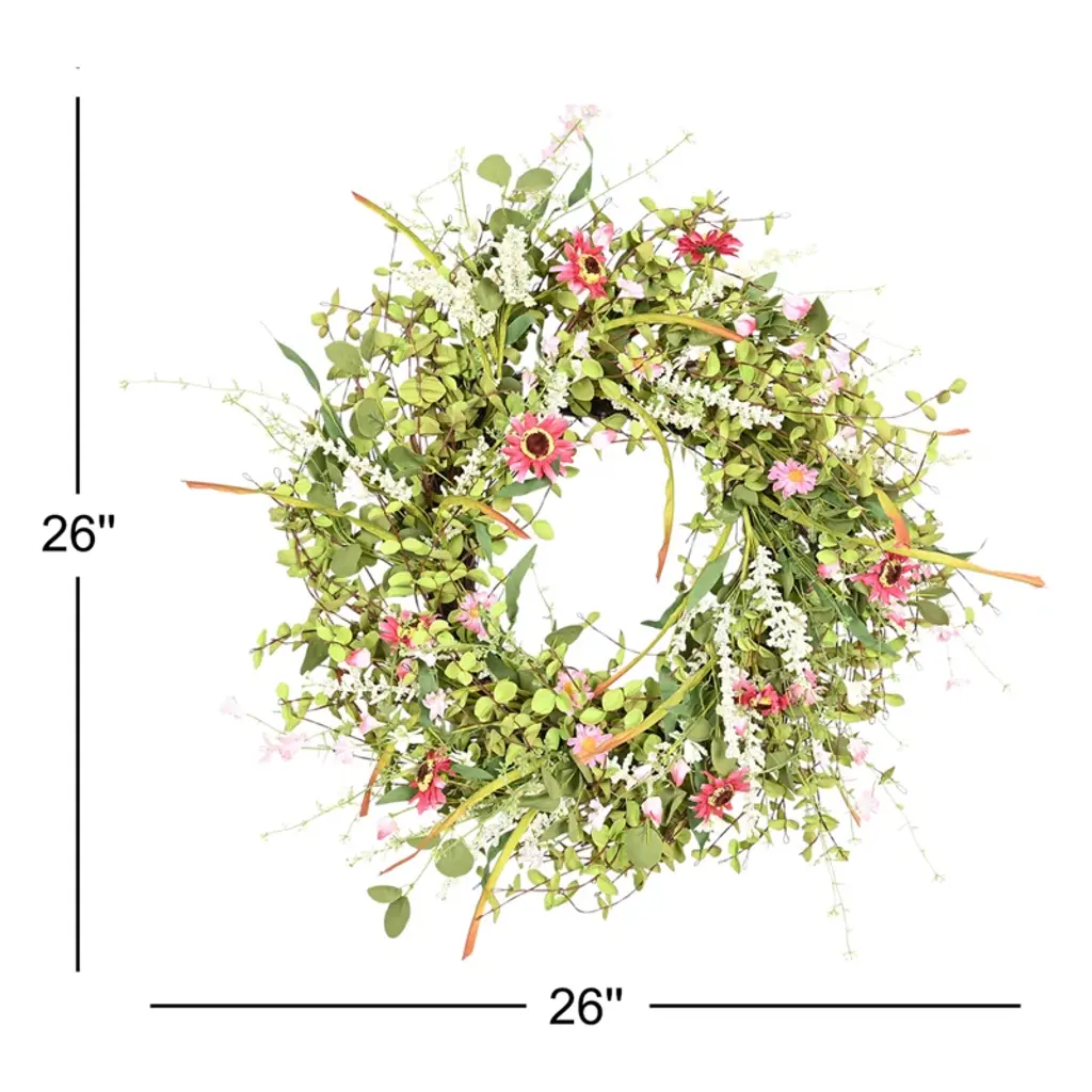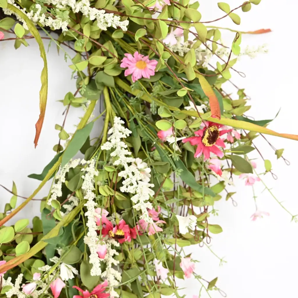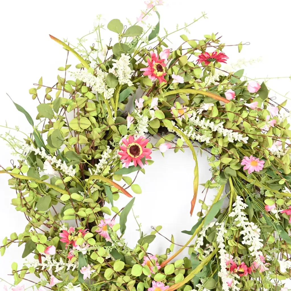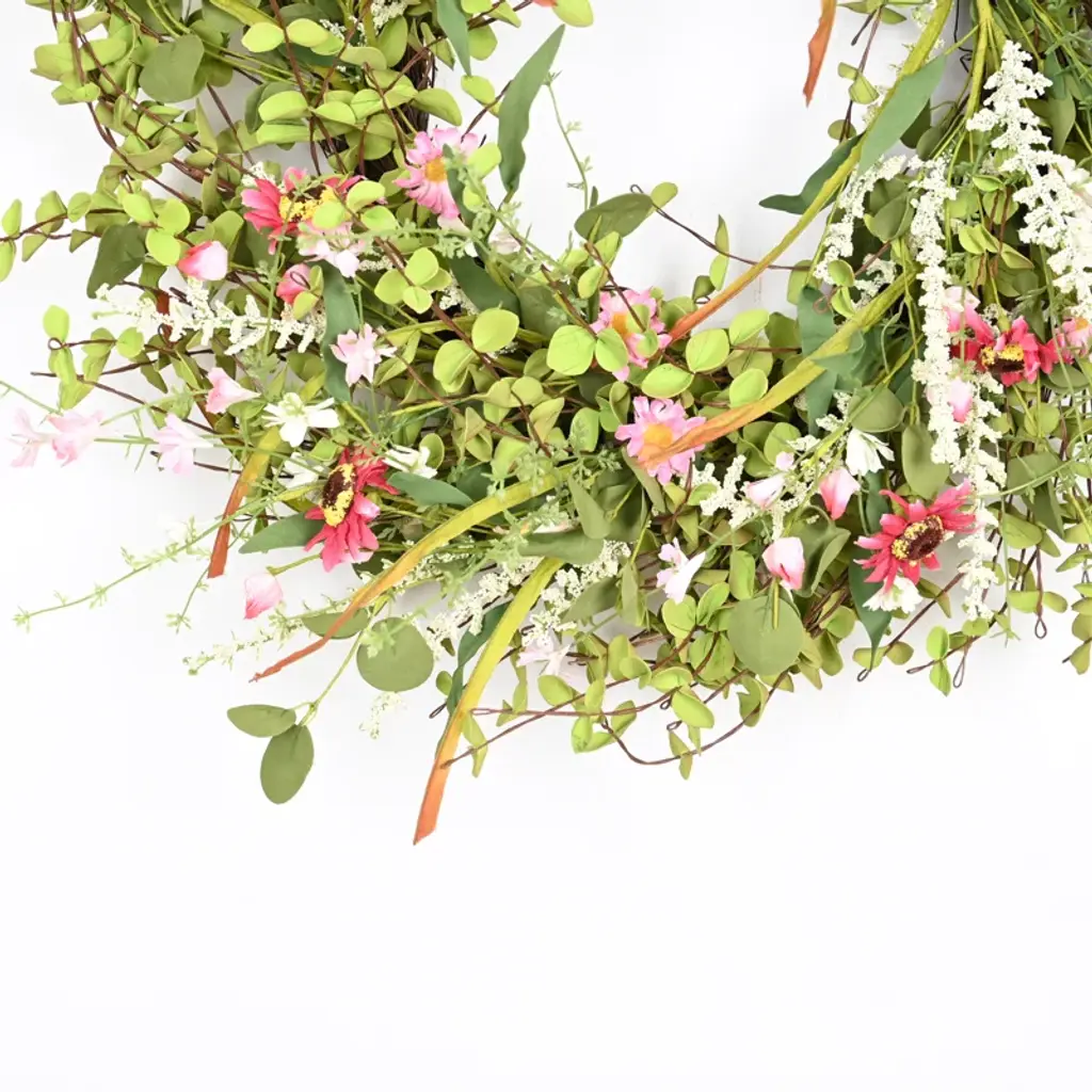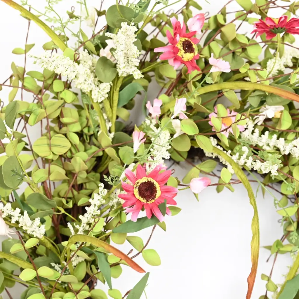 26" Artificial Farmhouse Twig Berry Blossoms Cluster Greenery Mini Eucalyptus Daisy Spring Summer Wreath For Front Door