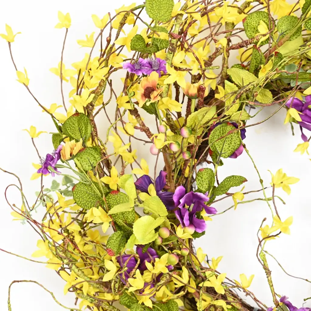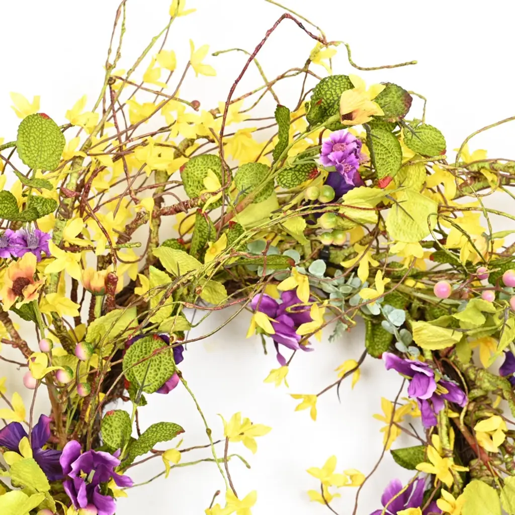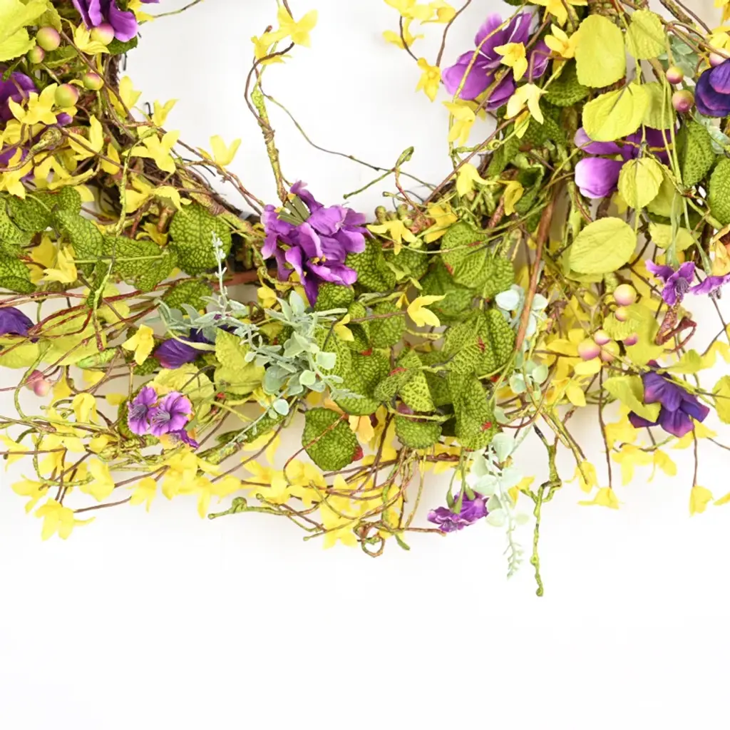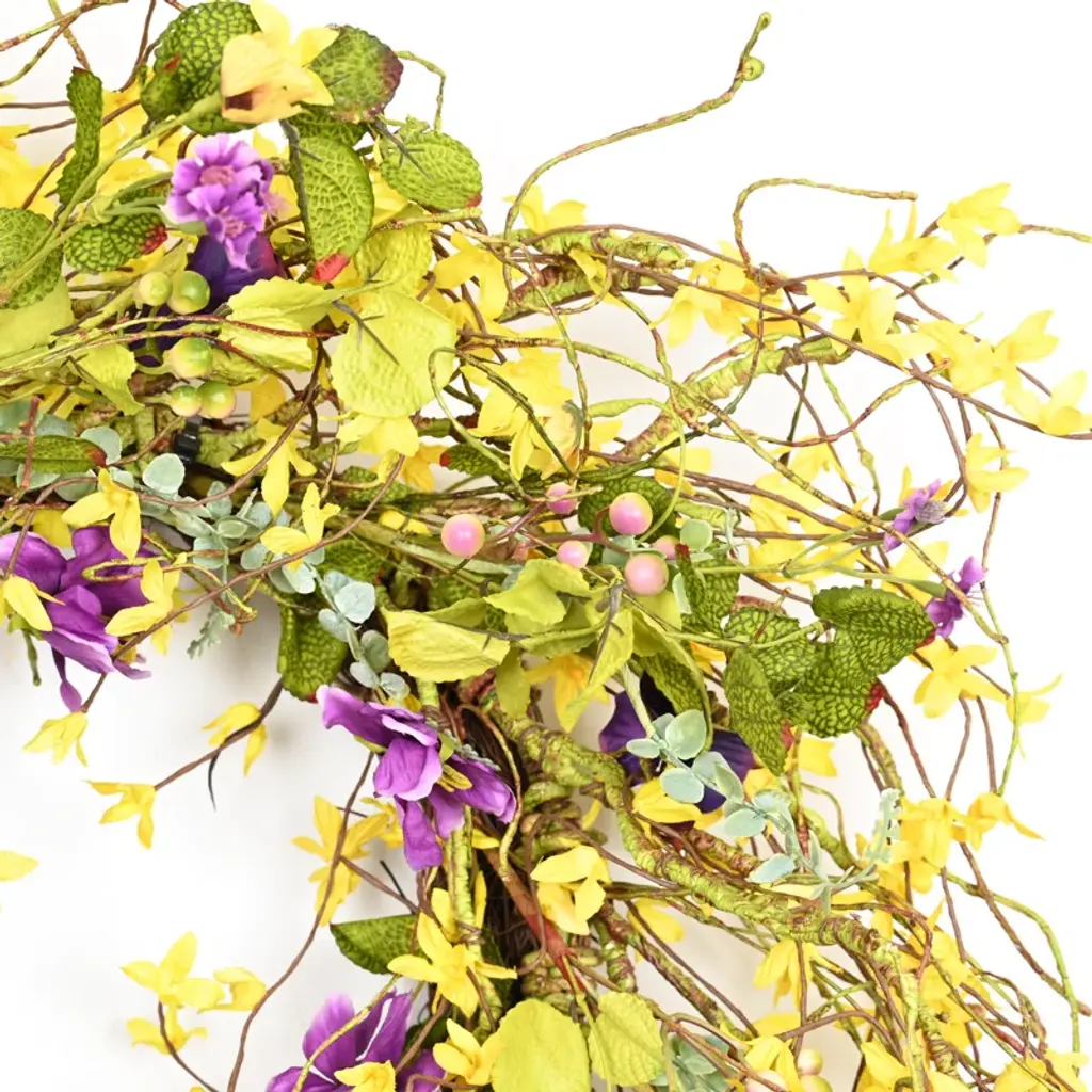 26" Artificial Farmhouse Twig Blossoms Cluster Greenery Mini Eucalyptus Wildflower Pansy Spring Summer Wreath For Front Door