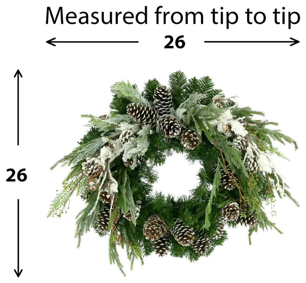 26" Holiday Evergreen Wreath With Snowy Branches And Pinecones