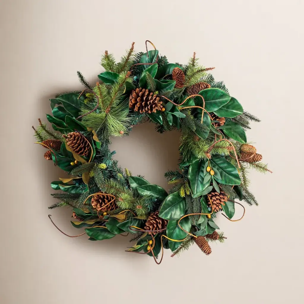 26" Mixed Pine With Leaves And Pine Cones Christmas Wreath