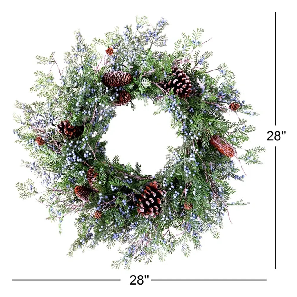 28" Artificial Berry Cedar Christmas Wreath, Green