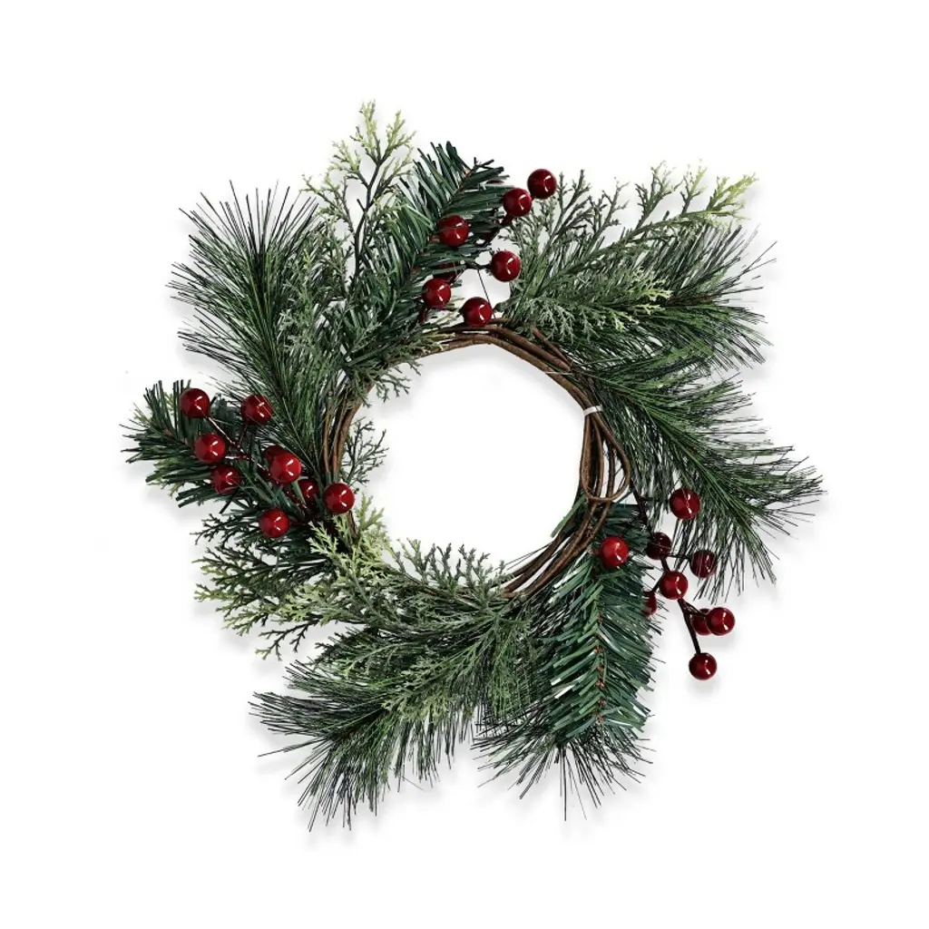 28" Christmas Pine, Eucalyptus, And Berries Metal Circlet Artificial Wreath