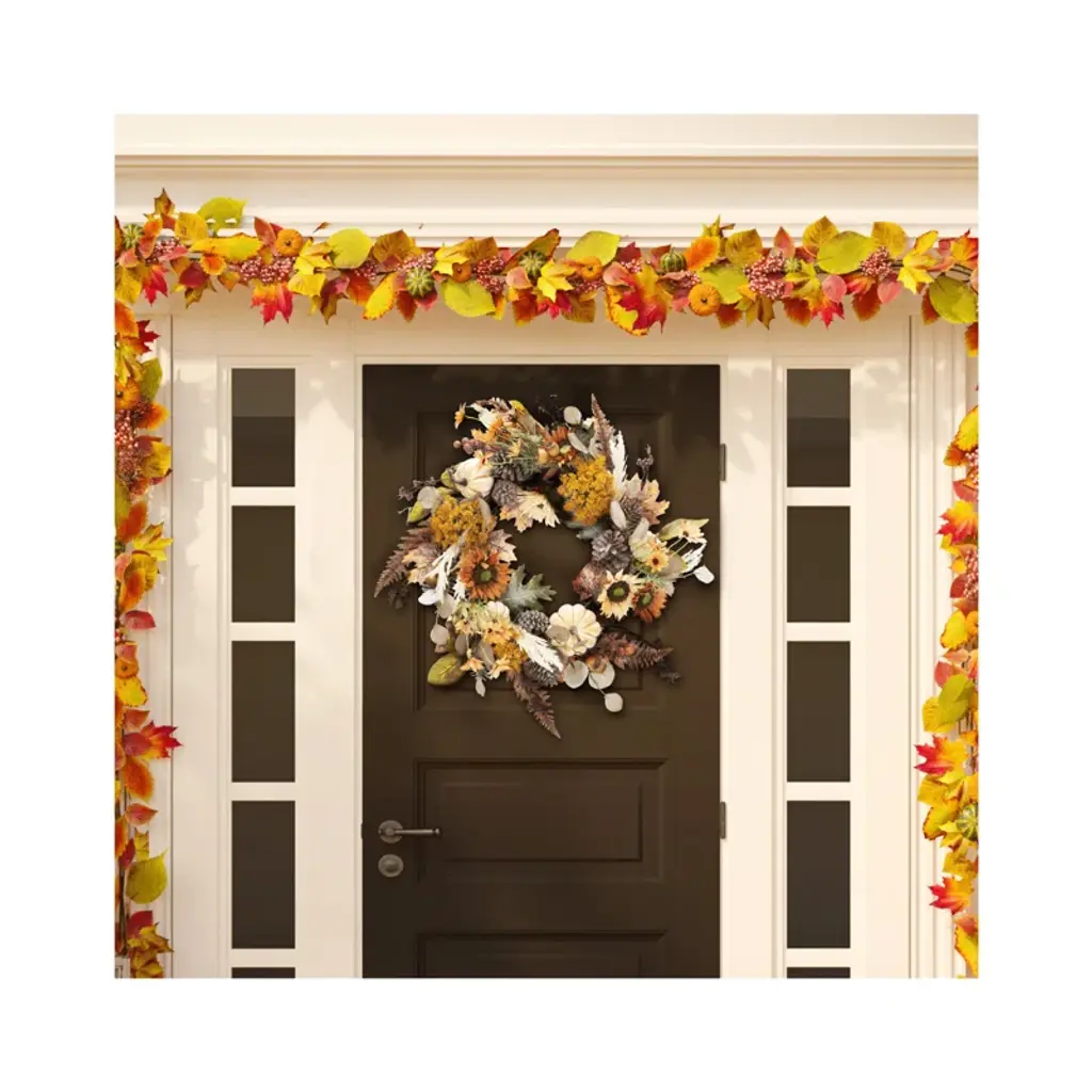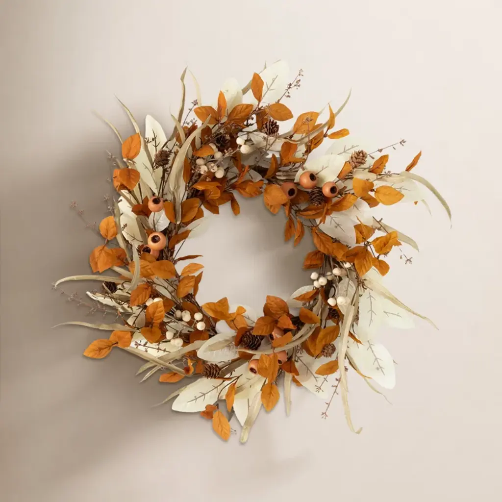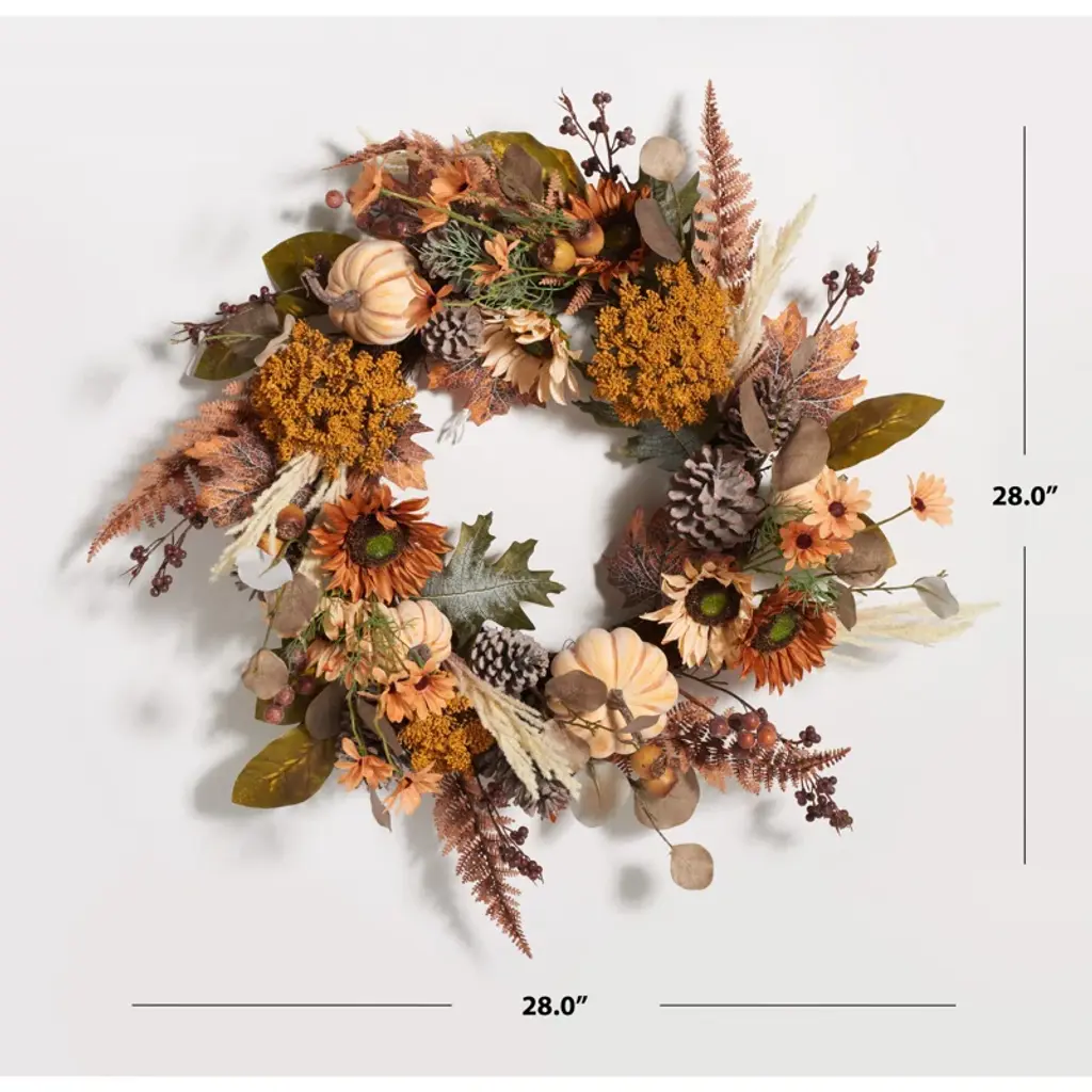 Welcome the warmth of fall into any setting with this charming, hand-painted wreath. Designed for covered outdoor use, its beauty transcends the season. Embrace the spirit of Thanksgiving with this unique and festive accent.