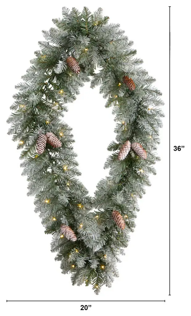 Spread holiday cheer to any area with this Kite Inspired Flocked Christmas Artificial Wreath. The kite shape will delight all who lay sight at the fun geometric shape, perfect for any style decor, including boho, modern and contemporary. Inspired by nature, evergreens are adorned by pinecones that add a rustic touch. Make holiday nights cozier with the 50 LED lights that are more energy-efficient. With a height of 3'', this kite is right for setting the scene. Add any bare wall or door. 3'' Holiday Christmas Geometric Diamond Frosted Wreath with Pinecones and 50 Warm White LED Lights