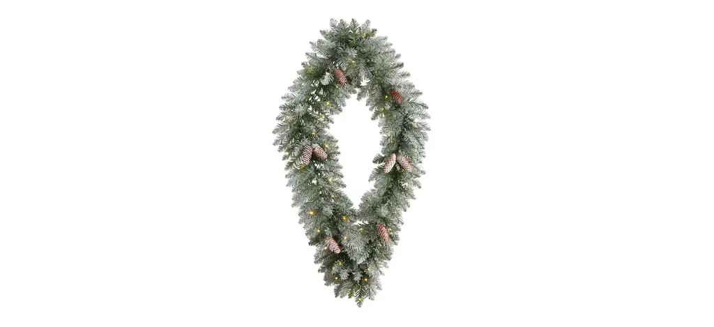 Spread holiday cheer to any area with this Kite Inspired Flocked Christmas Artificial Wreath. The kite shape will delight all who lay sight at the fun geometric shape, perfect for any style decor, including boho, modern and contemporary. Inspired by nature, evergreens are adorned by pinecones that add a rustic touch. Make holiday nights cozier with the 50 LED lights that are more energy-efficient. With a height of 3ft., this kite is right for setting the scene. Add any bare wall or door. Artificial wreaths are manufactured using synthetic materials, such as polyester material or plastic, and are well designed and constructed to be life-like in appearance. This item will need to be re-shaped when removed from the secure box to allow it to reach its fullest size. Your wreath will look beautiful for years to come; simply wipe clean with a soft dry cloth when needed.