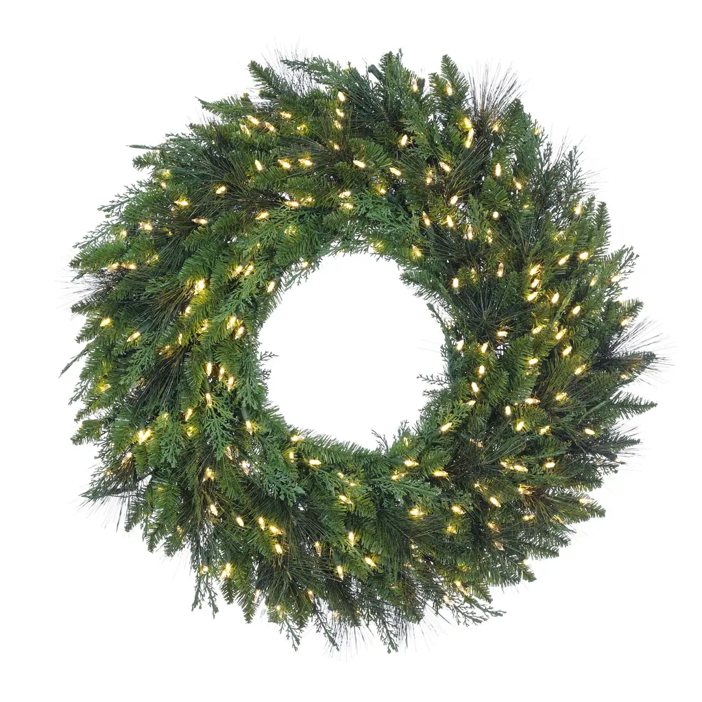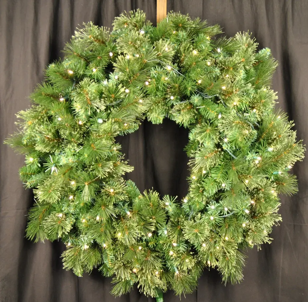 3'' Mixed Blend Wreath Pre-Lit With Warm White Led LightsThe stylish 36" pine wreath is artfully crafted with Pine tips.(320 Tips) Creating the utmost realism creating an eye-catching appeal, neighbors and customers will love this for years to come. Lit with 100 LED Warm White lights. Adding ornaments for a personal touch to this lush, green wreath can make it perfect any time of year!