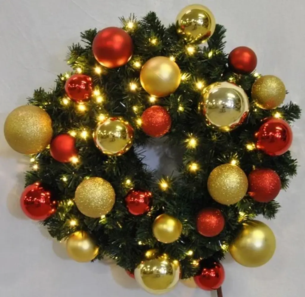 3'' Sequoia Wreath Decorated With The Red And Gold Ornament Collection Pre-Lit Warm White LedsThe popular mix blend 36wreath is artfully crafted with Sequoia Pine tips.(320 Tips) Creating the utmost realism and eye catching appeal, neighbors and customers will love this wreath for years to come. Lit with 100 LED warm white lights and decorated with our Traditional red and gold Collection. This wreath is sure to be a hit in any room.