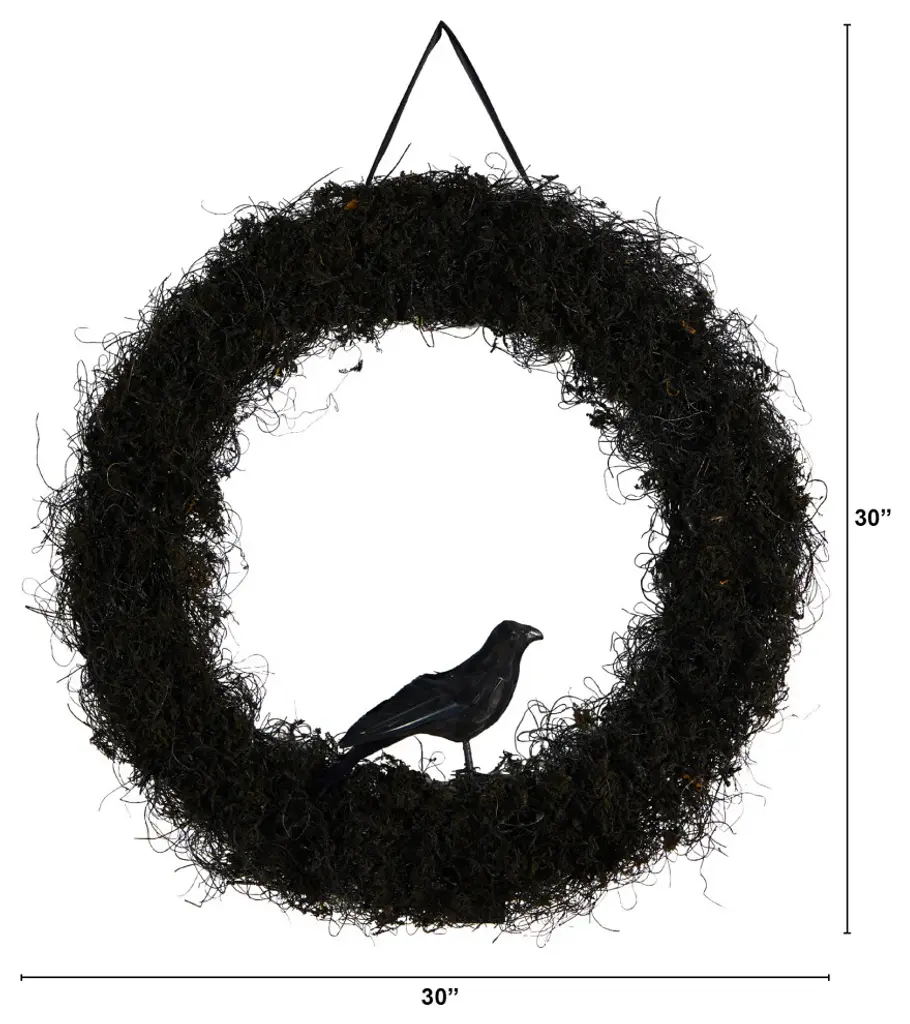 Are you looking to get spooky this Halloween? Wish to scare all the ghosts? This raven inspired black wreath, will add a festive, yet sleek touch to any room. Like a costume, dress any area of your home by darkening spaces in need of a little scary touch. With a diameter of 30in. house in any area that needs a festive touch. Artificial wreaths are manufactured using synthetic materials, such as polyester material or plastic, and are well designed and constructed to be life-like in appearance. This item will need to be re-shaped when removed from the secure box to allow it to reach its fullest size. Your wreath will look beautiful for years to come; simply wipe clean with a soft dry cloth when needed.