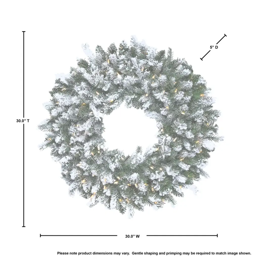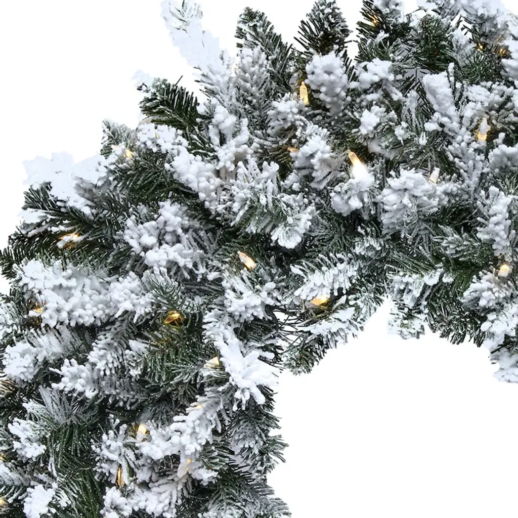 Bring the slopes home this holiday with an enchanting 30”' LED Snow tip Aspen Wreath. With 201 beautifully crafted tips, this wreath boasts a full and lush appearance, reminiscent of a snow-covered forest. Crafted from high-quality PVC, the snow-kissed branches look realistic and bring this piece to life. Adorned with 100 energy-efficient LED lights, it radiates a warm glow, enhancing your holiday decor A classic design allows for easy customization—add your favorite ornaments, ribbons, or bows to create a personalized touch. A wire base makes hanging a breeze, and it is placed on your front door, above mantels, or walls. Arrives ready to hang no mounting tools required. This piece is sure to delight friends and family alike! Product may ship compressed, gentle shaping and primping can help match the size of the image shown.