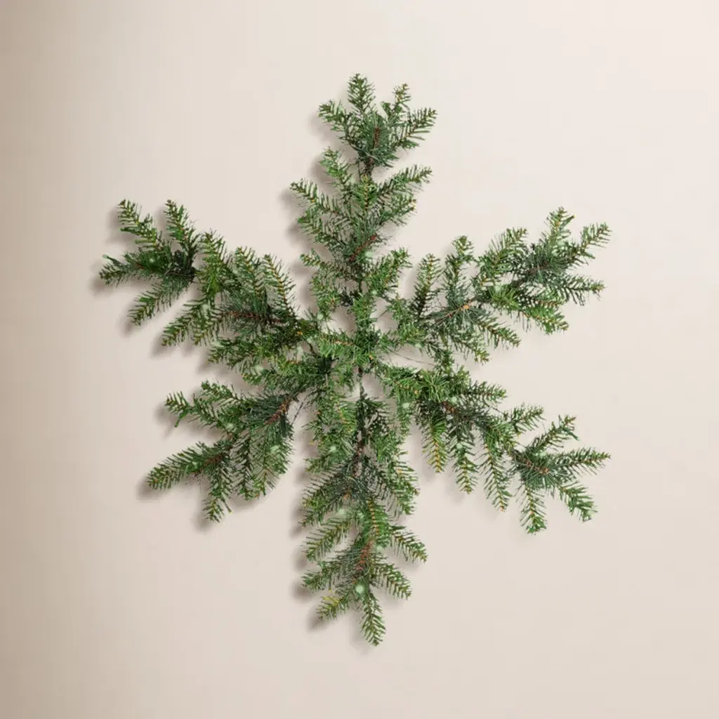 Have some whimsical fun this holiday season with a Pre-Lit Snowflake Artificial Dunhill Fir Wreath with Pinecones. Be bold and different by displaying evergreens in a star shape inspired by nature that mimics real trees'' foliage and texture. Pre-lit with 40 LED lights that are more energy efficient create a cozy scene with the family. Pinecones adorn the 120 bendable branches for a rustic look. With a diameter of 30in., house in any bare wall or door. Artificial wreaths are manufactured using synthetic materials, such as polyester material or plastic, and are well designed and constructed to be life-like in appearance. This item will need to be re-shaped when removed from the secure box to allow it to reach its fullest size. Your wreath will look beautiful for years to come; simply wipe clean with a soft dry cloth when needed.