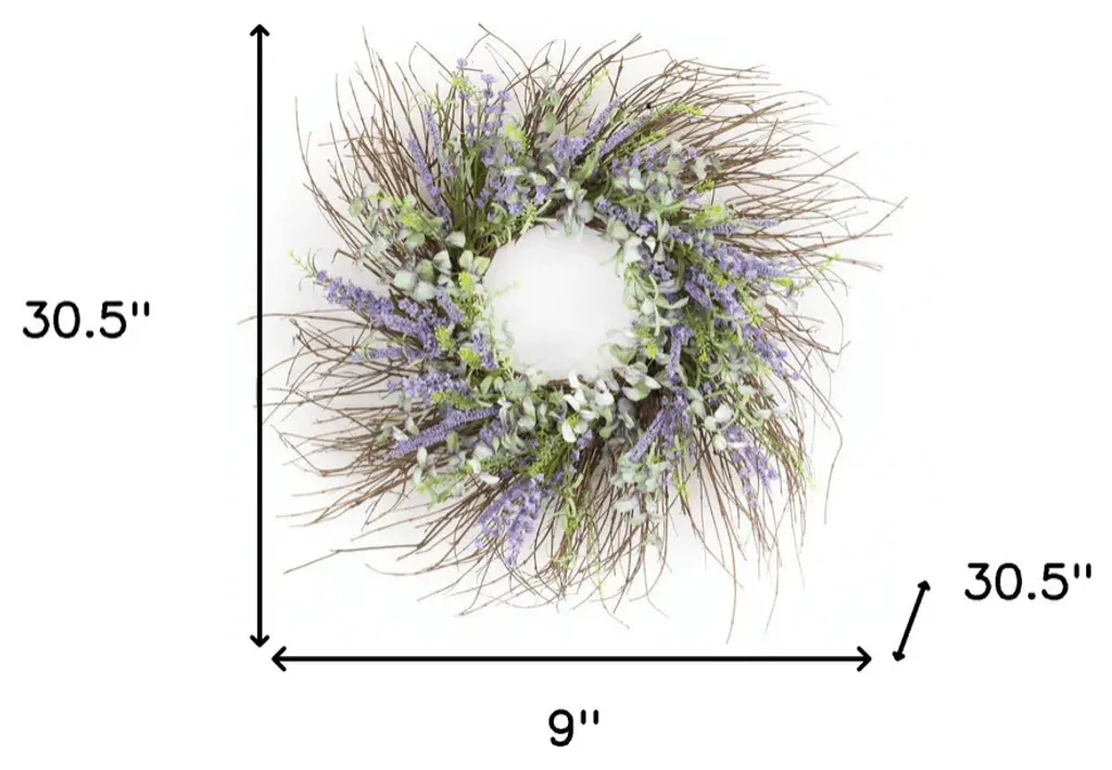 This artificial wreath will hold its color for years to come. This lovely wreath makes a wonderful gift and is sure to brighten someone''s day. Crafted with attention to detail, this beautiful wreath features a mixed assortment of artificial plants, creating a vibrant and lifelike display. The wreath is designed in a classic circular shape, perfect for adding a touch of elegance to any space. Ideal for covered outdoor use, this unlit wreath can be easily hung or displayed on doors, walls, or windows. Made from high-quality styrofoam, this wreath is durable and long-lasting. Its stunning purple color and traditional style make it a standout choice for any home decor. 30.5-inch H x 30.5-inch W x 9-inch D