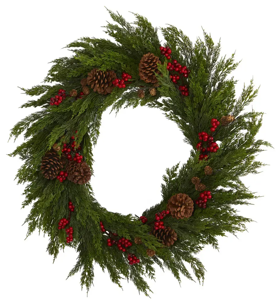 32" Cypress With Berries And Pine Cones Artificial Wreath