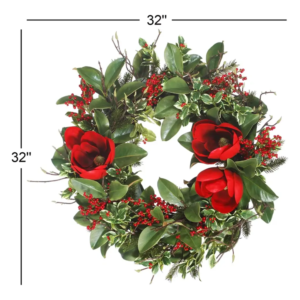 32'' Faux Magnolia Polyester Wreath