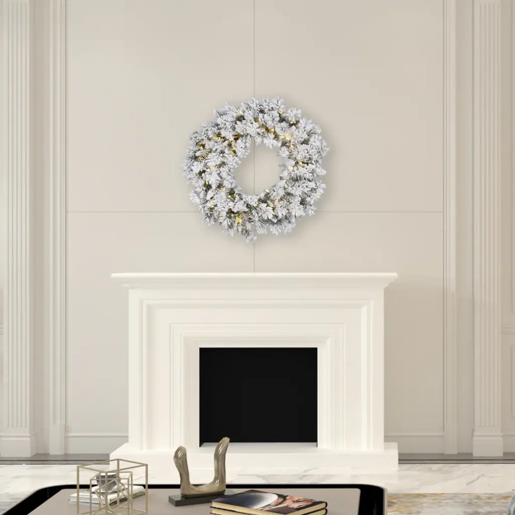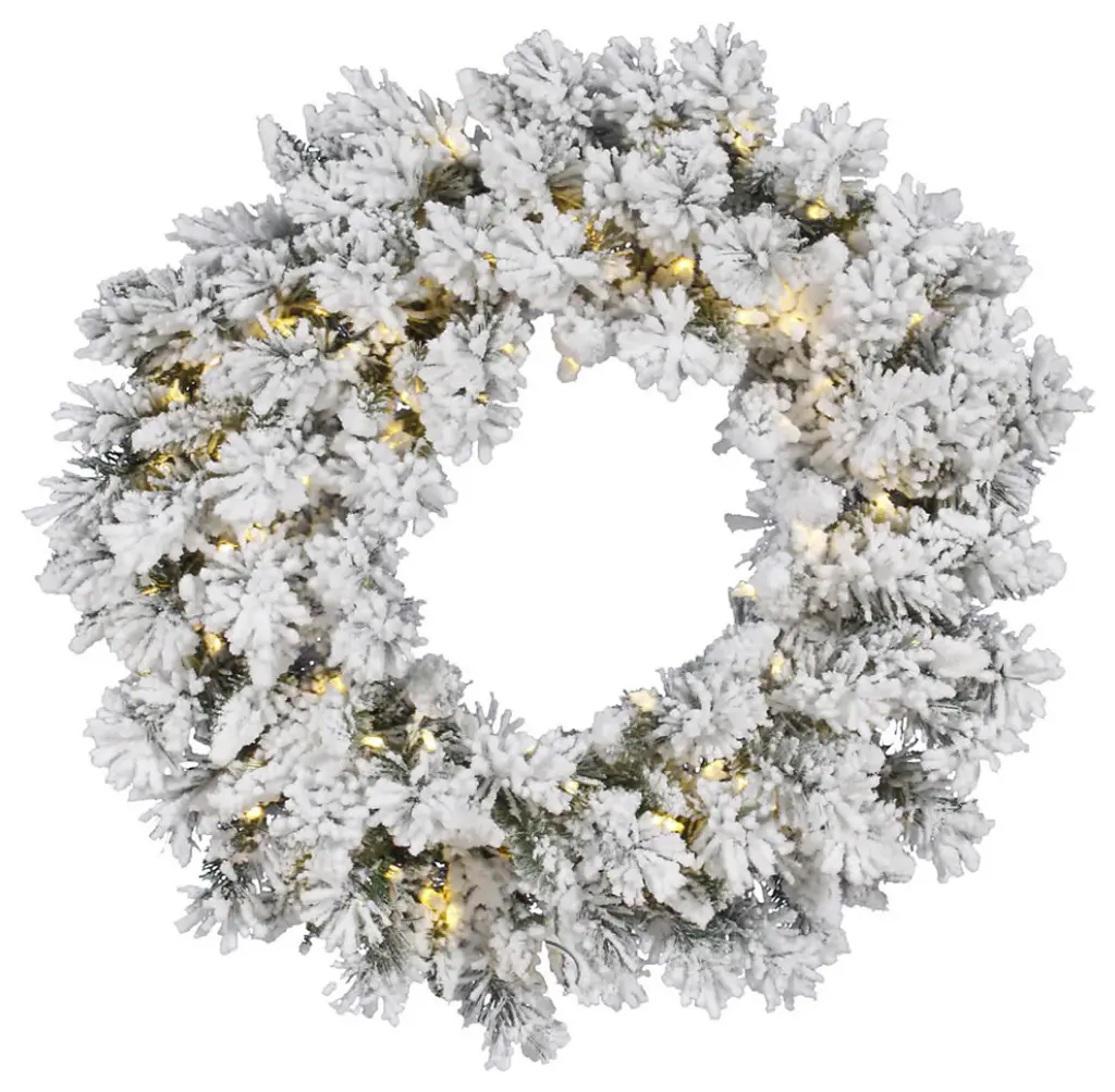 36" Flkd Snow Ridge Wreath LED100 WmWhtVickerman 36" Flocked Snow Ridge Artificial Christmas Wreath, Warm White LED Lightslight Count: 100Light Color: Warm WhiteTips: 200Color: Flocked White on GreenProduct Dimensions (W x D x h): 36 x 3 x 36
