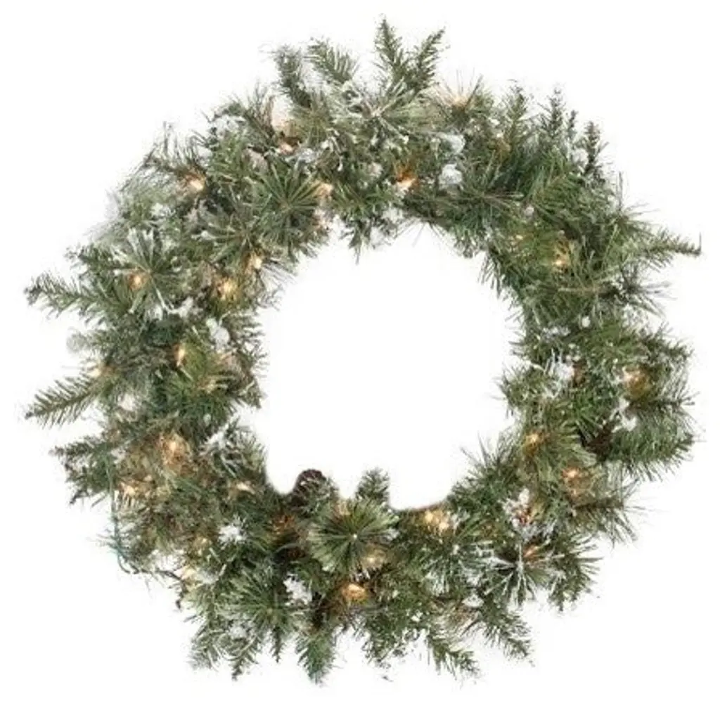 36" Flkd Snow Ridge Wreath Led100 Wmwht