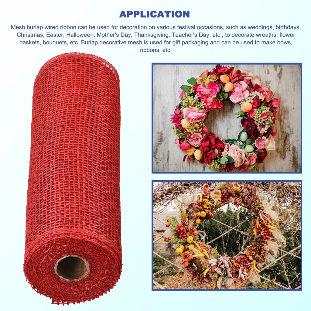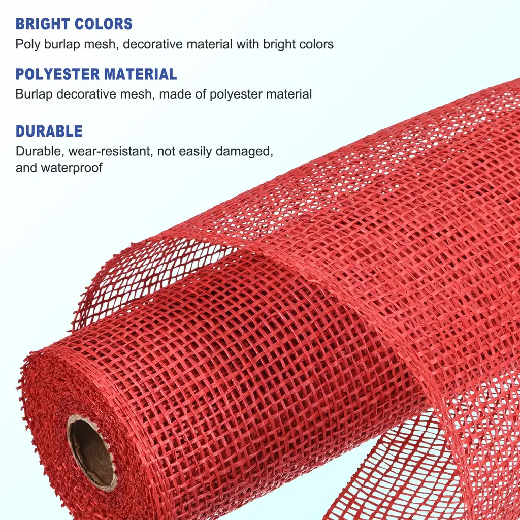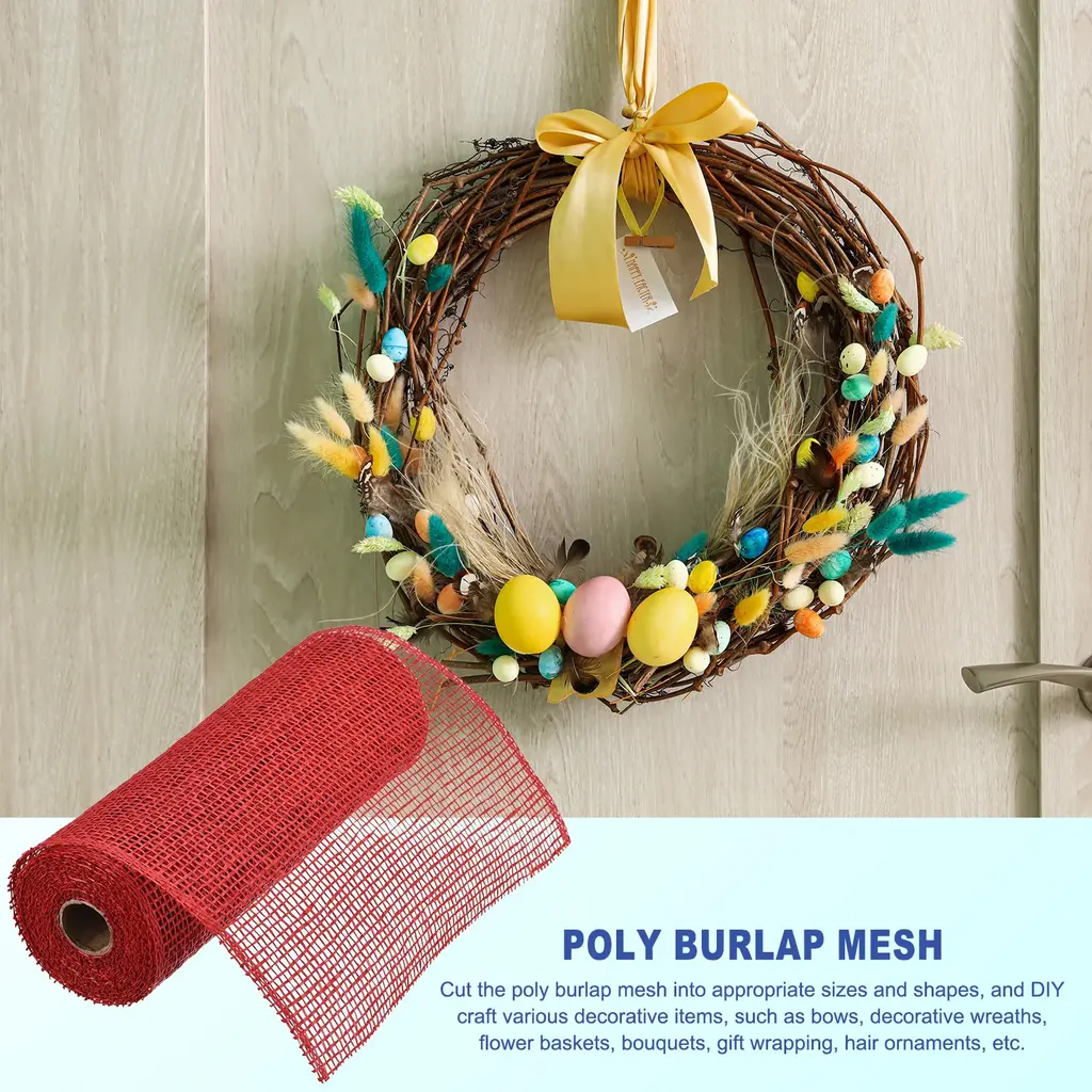 What is this?Poly burlap mesh decorative mesh ribbon roll, elegance, and practicality, applied to various decorative flower mesh and gift wrapping. Mesh burlap wired ribbon can be used for decoration on various festival occasions, such as weddings, birthdays, Christmas, Easter, Halloween, Mother's Day, Thanksgiving, Teacher's Day, etc., to decorate wreaths, flower baskets, bouquets, etc. Burlap decorative mesh is used for gift packaging and can be used to make bows, ribbons, etc.What will I get?Poly burlap mesh, is in size of :25cm/10 inches width, 6.4 Yard/6m lengthIn the package of: 3 roll x Poly burlap meshIs there any advantages of the product?Poly burlap mesh, decorative material with bright colors, used to decorate wreaths, bouquets, etc. in spring, summer, and fall, adding bright colors and natural texture; Burlap decorative mesh, made of polyester material, which is durable, wear-resistant, not easily damaged, and waterproof. Floral burlap mesh roll can be used outdoors in gardens, lawns, and other areas; Poly burlap decorative mesh can be cut, folded, and packaged for easy use, especially suitable for gift wrappingHow to use it?Steps of installation: Cut the poly burlap mesh into appropriate sizes and shapes, and DIY craft various decorative items, such as bows, decorative wreaths, flower baskets, bouquets, gift wrapping, hair ornaments, etc.What should I notice?Please select the correct size of poly burlap mesh