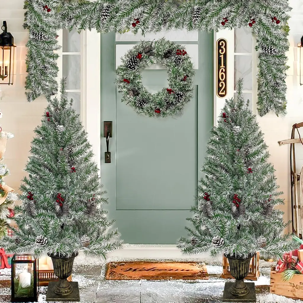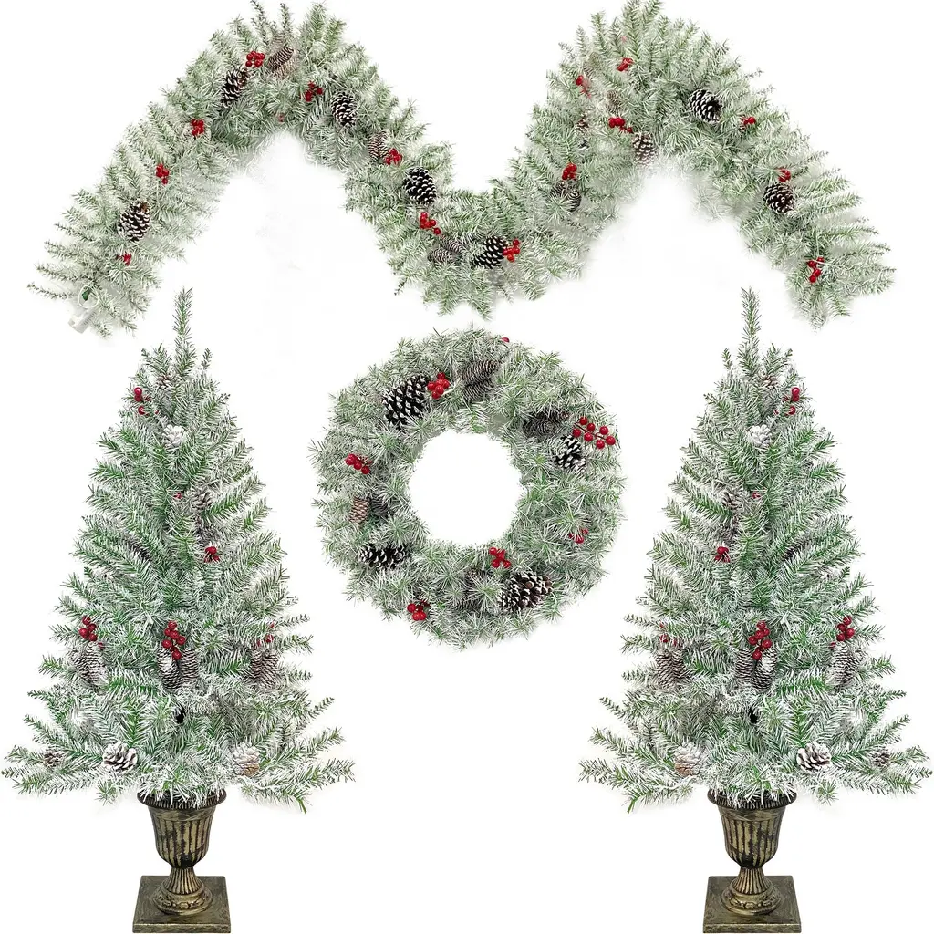 4-Piece Set, Garland, Wreath And Set Of 2 Entrance Trees X-Mas - N/a - White