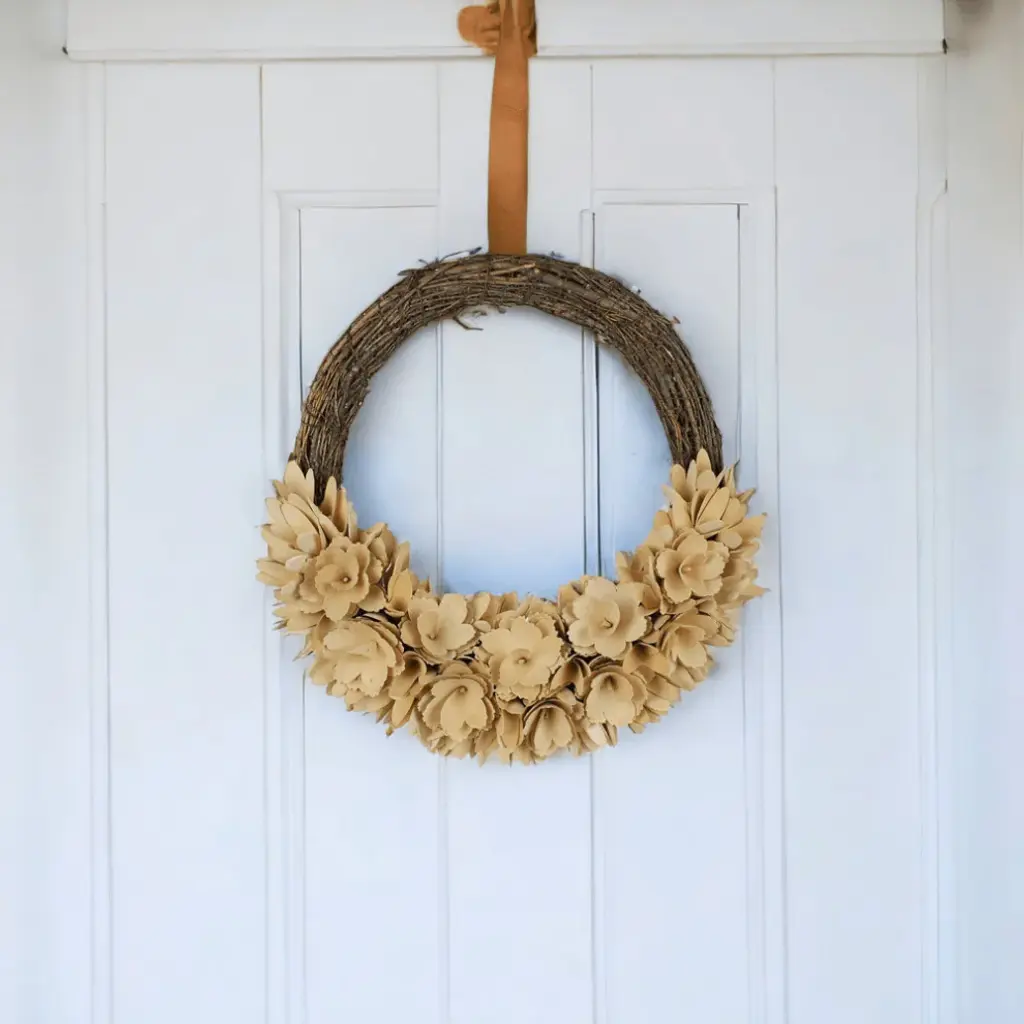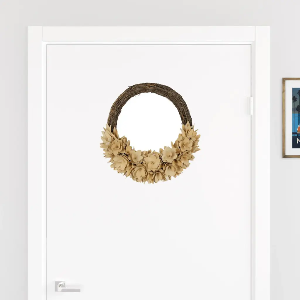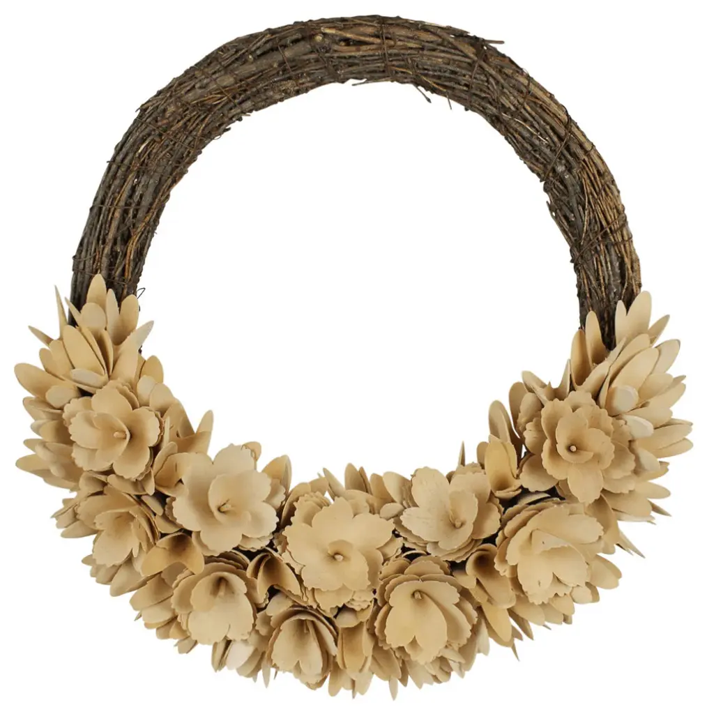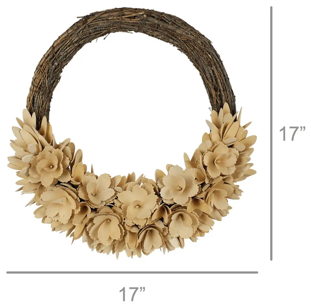 Made to mimic the real thing, this artificial wreath stays green year after year, with no watering needed. This lovely wreath makes a wonderful gift and is sure to brighten someone''s day. The wreath is made of wood curls and features a circular shape with a hole diameter of 9 inches. It is suitable for covered outdoor use and comes unlit, allowing you to decorate it as you please. The tan color adds a casual, yet charming touch to any space. Crafted from high-quality wood, this wreath exudes natural elegance and will complement any style of decor. 17-inch H x 17-inch W x 4-inch D