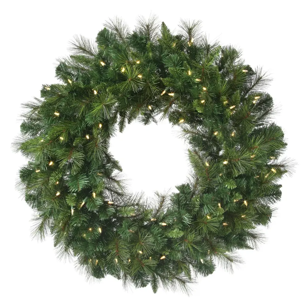 42" Cheyenne Pine Wreath LED 150WWVickerman 42" Cheyenne Pine Artificial Christmas Wreath, Warm White LED Lightslight Count: 150Light Color: Warm WhiteTips: 360Color: GreenProduct Dimensions (W x D x h): 42 x 3 x 42