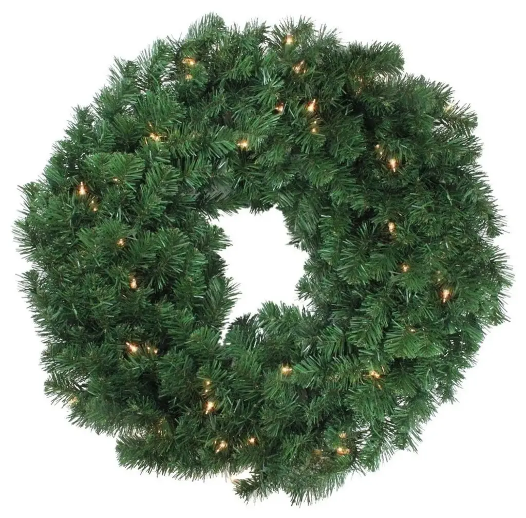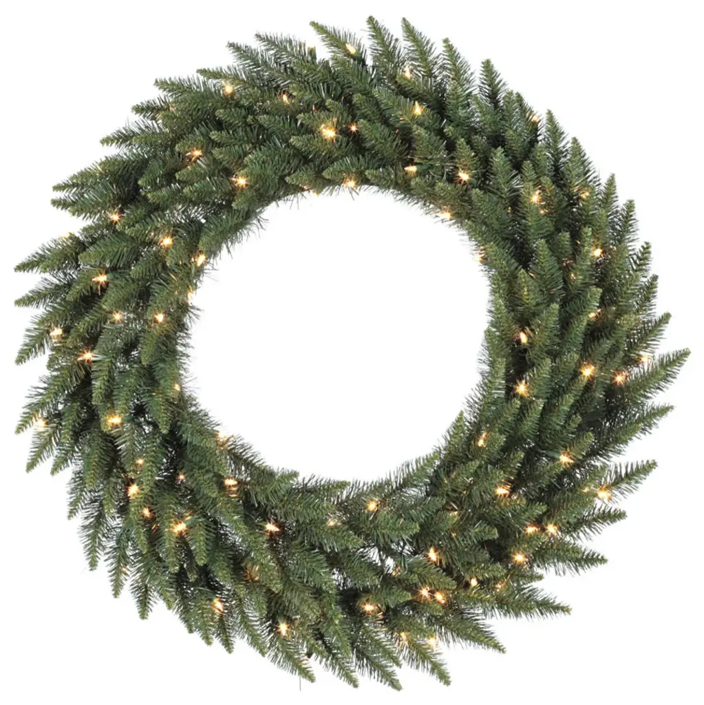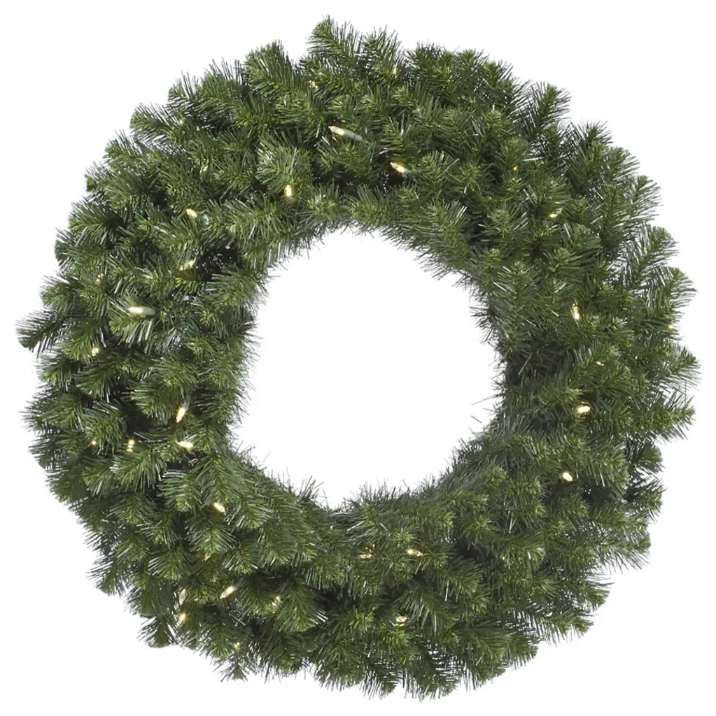 48" Cheyenne Pine Wreath 200WmWht LEDVickerman 48" Cheyenne Pine Artificial Christmas Wreath, Warm White LED Lightslight Count: 200Light Color: Warm WhiteTips: 450Color: GreenProduct Dimensions (W x D x h): 48 x 4 x 48