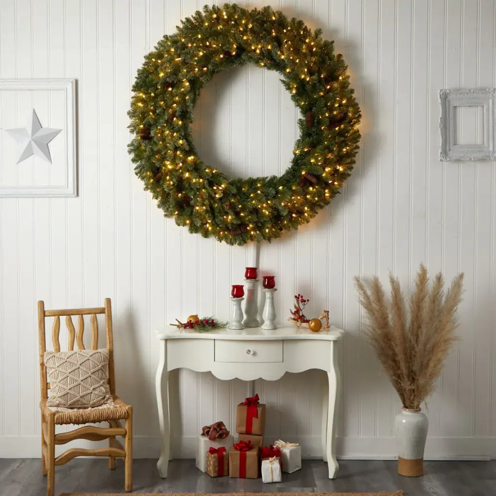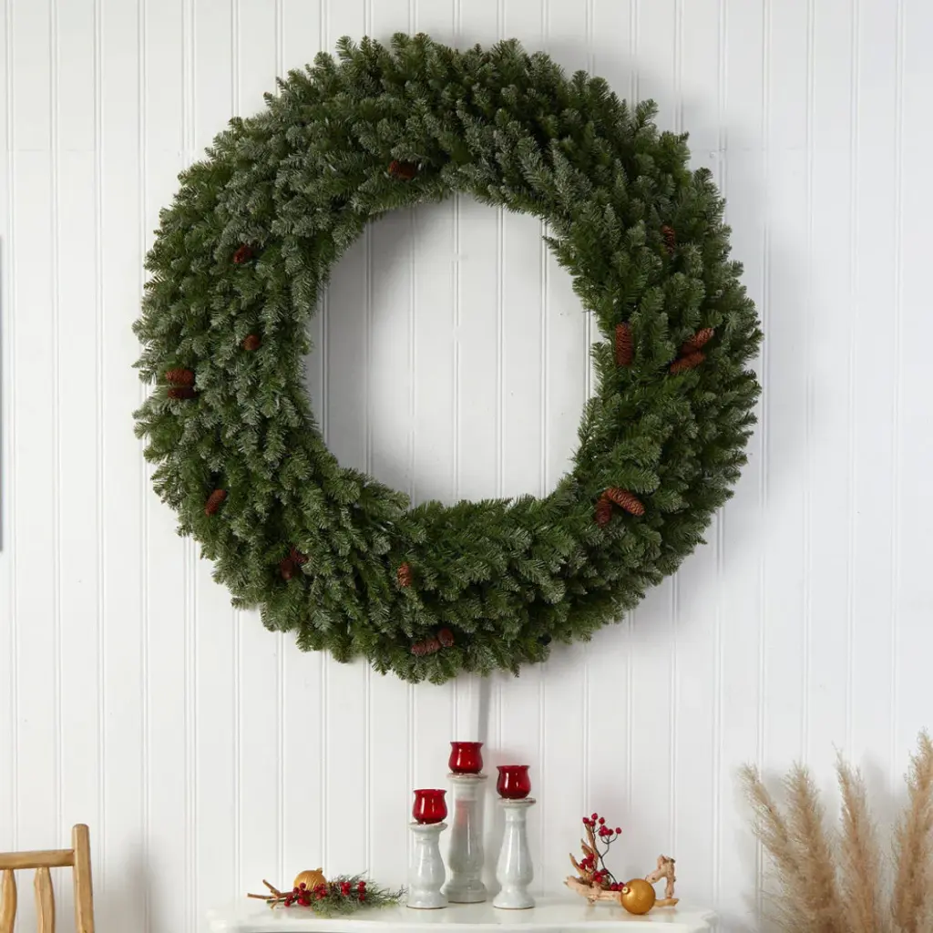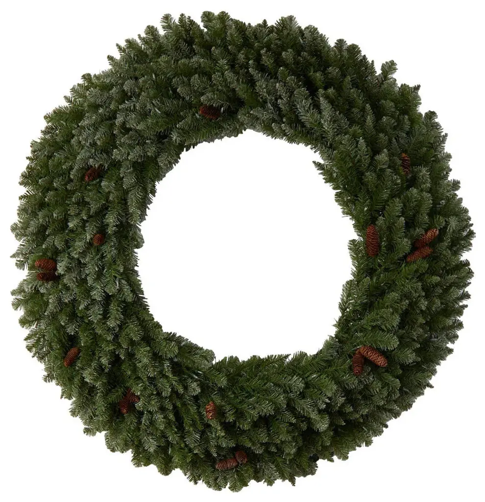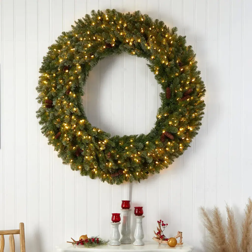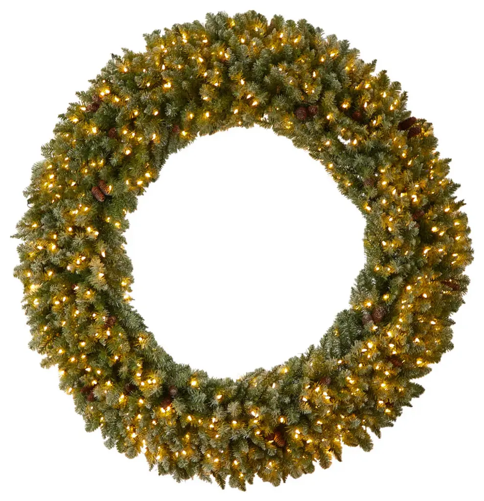 5' Flocked Artificial Christmas Wreath With Pinecones, 300 Clear Led Lights