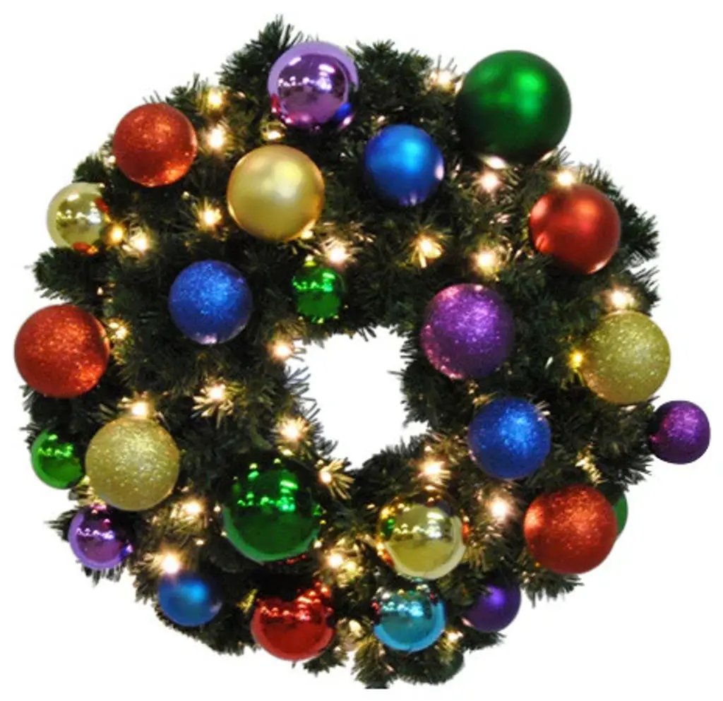 5'' Sequoia Wreath Decorated With The Royal Ornament Collection Pre-Lit Warm White LedsThe snazzy 60Sequoia wreath is artfully crafted with Sequoia tips.(1200 Tips) Creating the utmost realism and eye catching appeal, neighbors and customers will love this wreath for years to come. Lit with 200 LED Warm White lights and decorated with our flashy Royals Collection. This wreath is sure to add flare to any room.