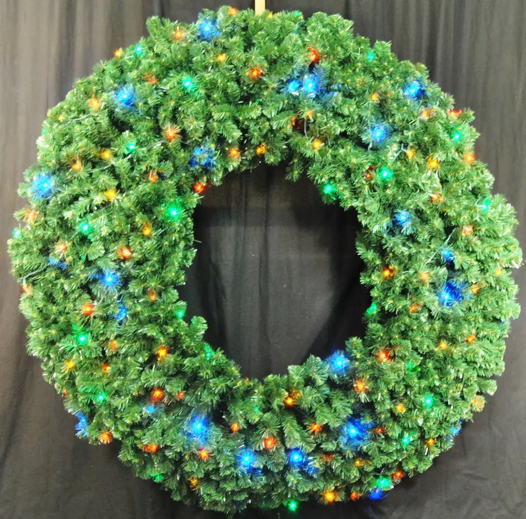 5'' Sequoia Wreath Pre-Lit With Multi Colored LedsThis beautiful 60" Sequoia wreath comprised of Sequoia Pine tips. (1200 Tips) The wreath was hand-crafted to give it the most realistic look possible. Lit with 200 LED multi-colored lights. Neighbors and customers will love this wreath for years to come!