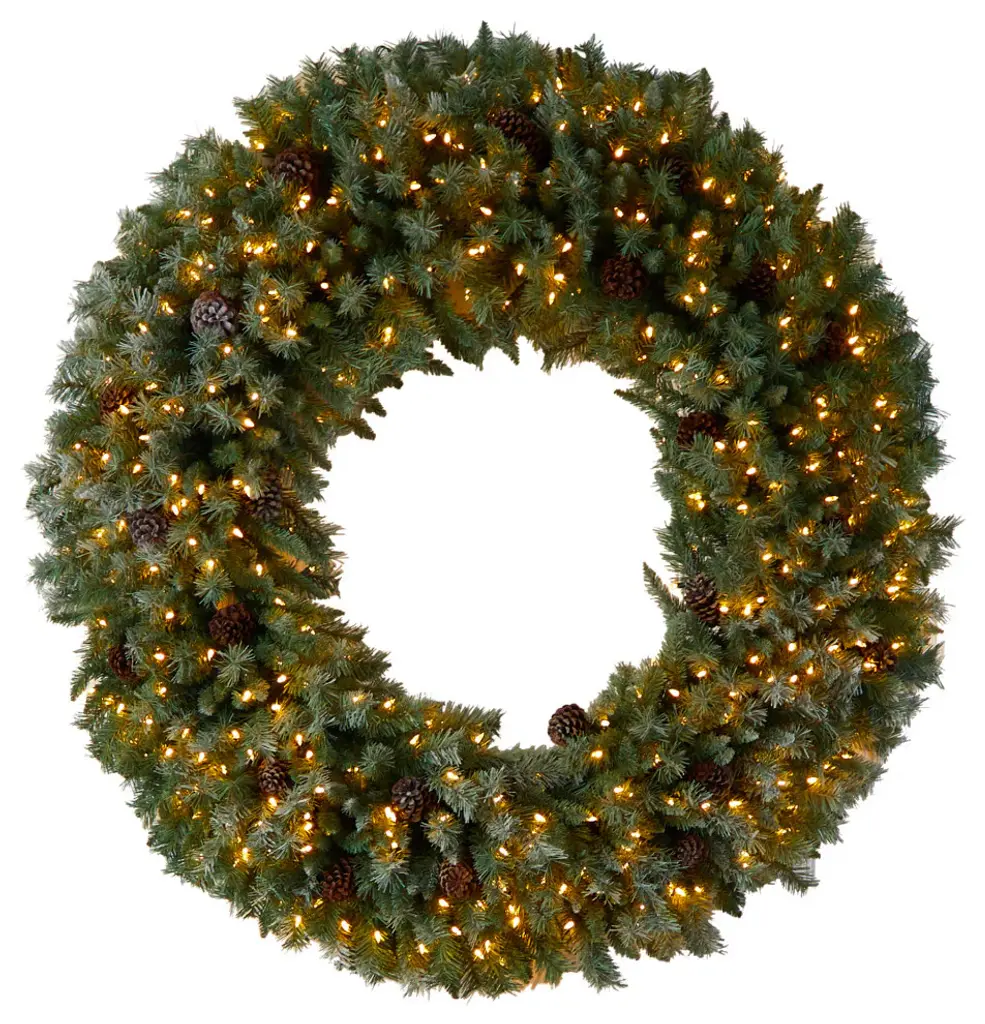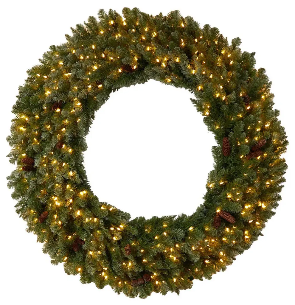 5Ï¿1⁄2 Giant Artificial Christmas Wreath With 280 Warm White Lights And Pine Cones