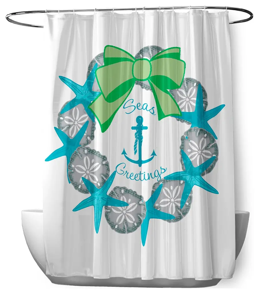 70"wx73"l Seas And Greetings Wreath Shower Curtain, Turquoise