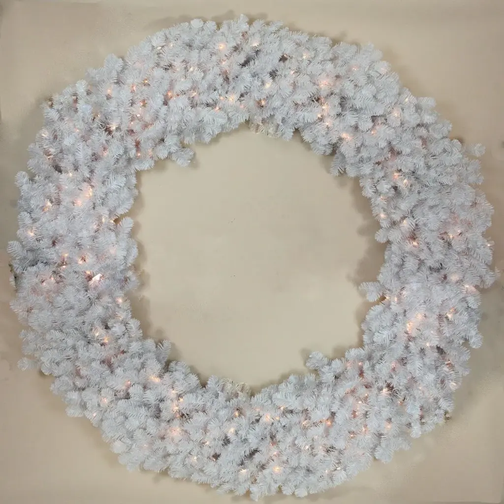 72" Huge Pre-Lit White Canadian Pine Artificial Christmas Wreath, Clear Lights