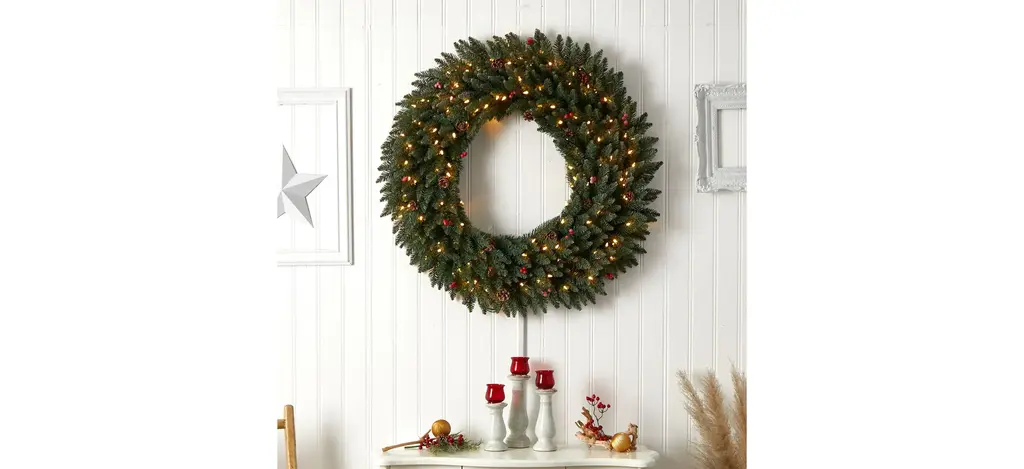 Adak 4Ft Pre-Lit Christmas Wreath With Berries