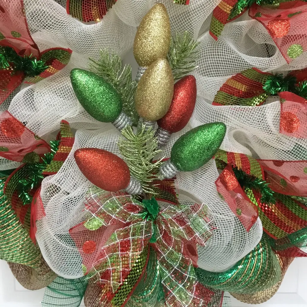All Is Bright Christmas Lights Handmade Deco Mesh Holiday Wreath