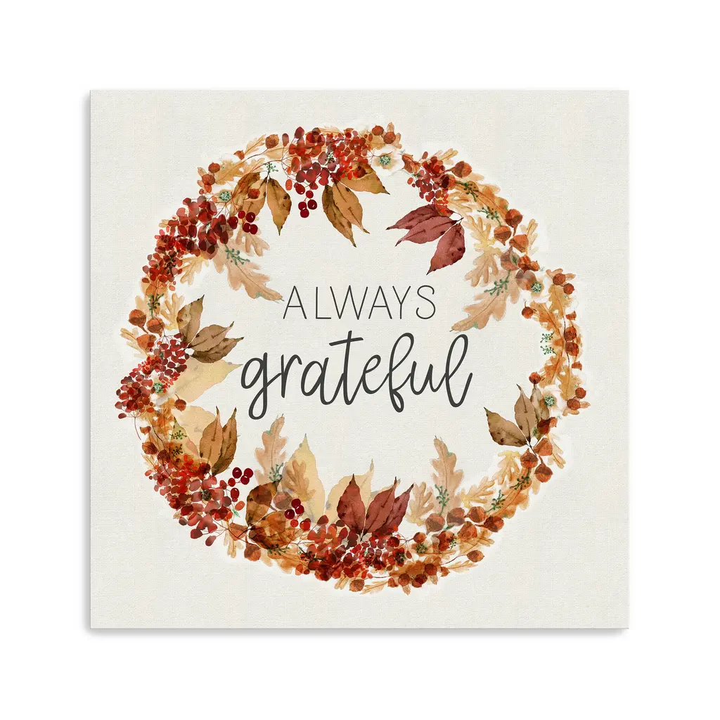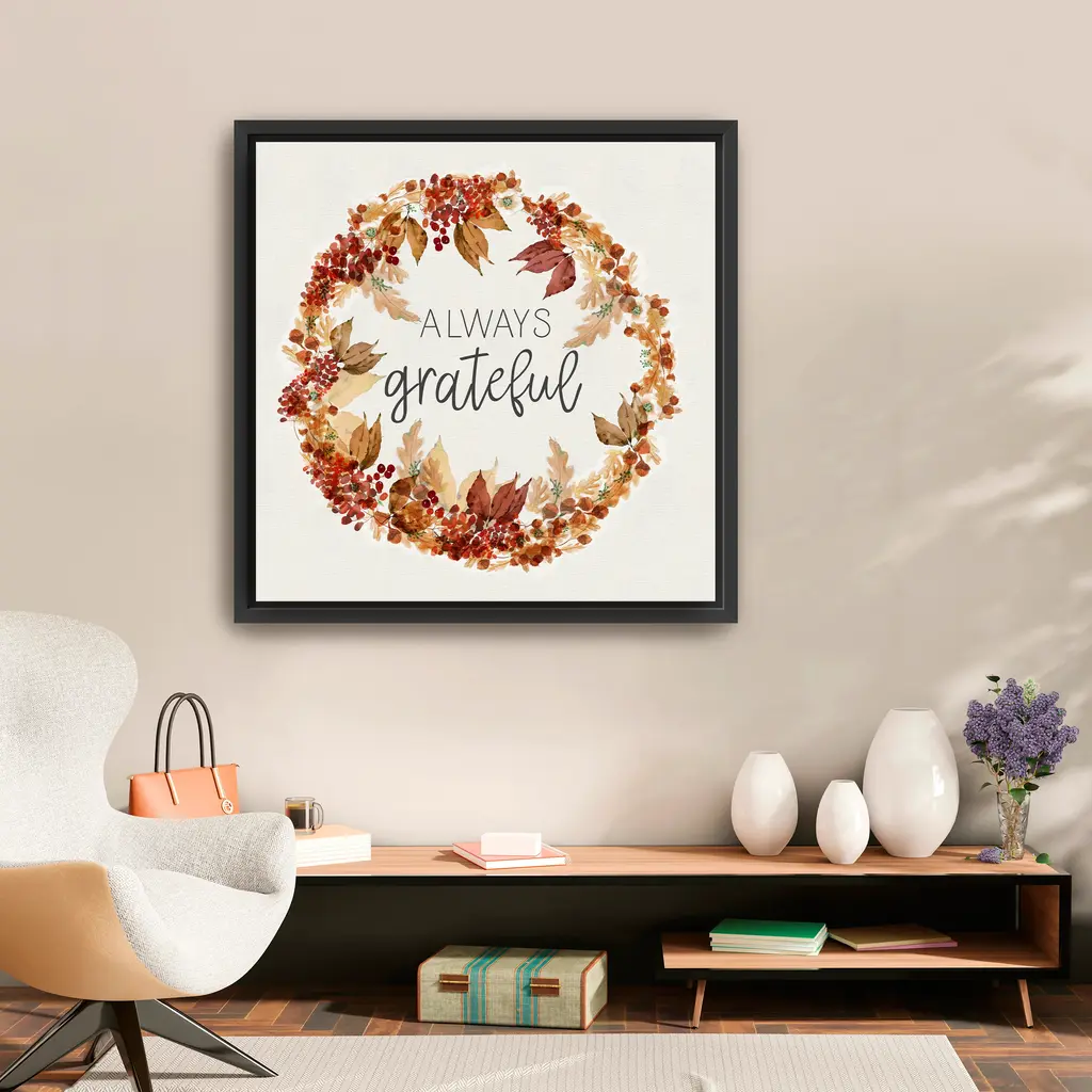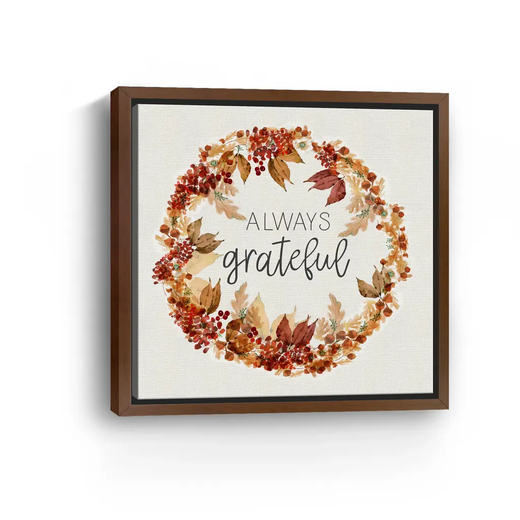 Always Grateful Wreath Canvas Giclee - Framed / Dark Walnut / 20x20