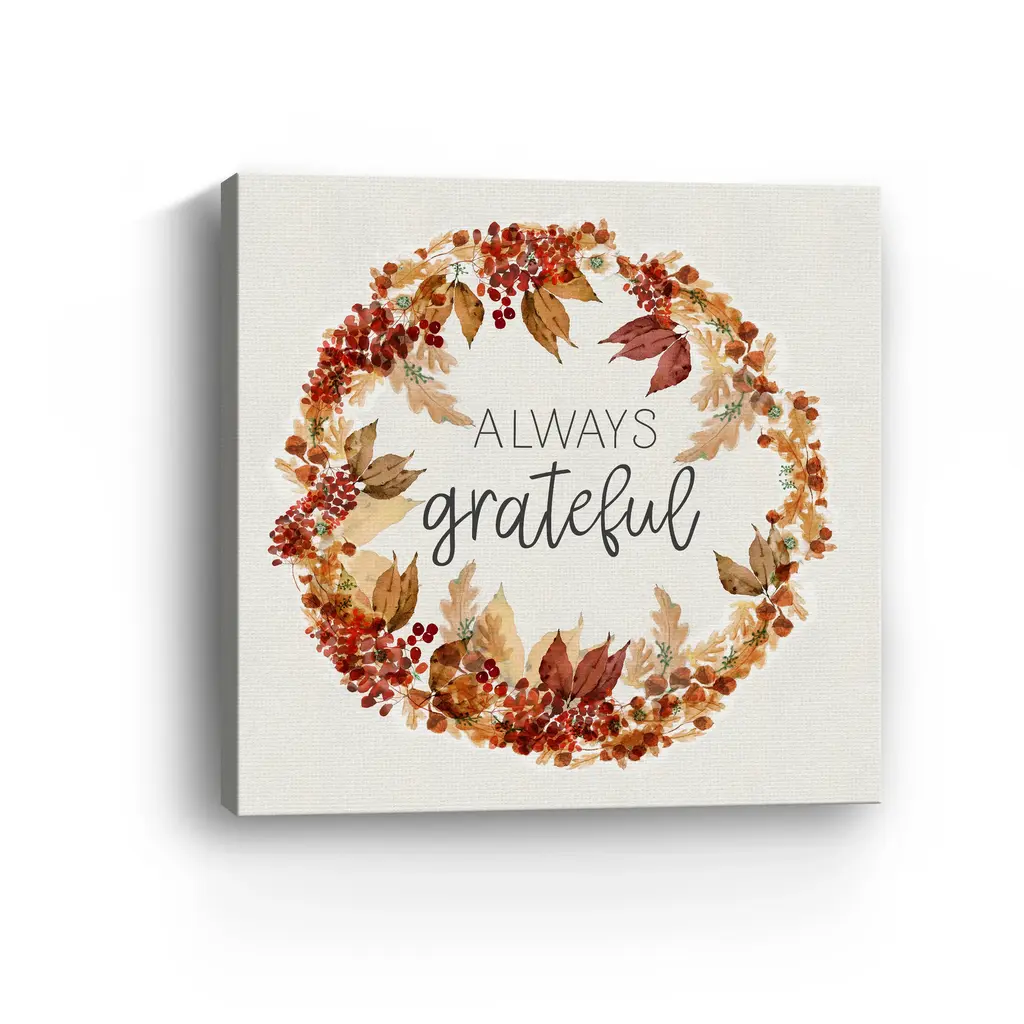 Always Grateful Wreath Canvas Giclee - Framed / Dark Walnut / 40x40